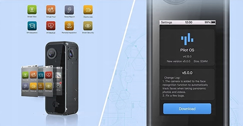 Операционная система Pilot OS на базе Android разработана с вниманием к мельчайшим деталям. Она позволяет, среди прочего, развивать и адаптировать ряд функций устройства под индивидуальные нужды пользователя, что в сочетании с алгоритмами искусственного интеллекта, предназначенными для обработки записанных материалов, делает камеру Pilot ONE EE одной из самых совершенных сферических камер. камеры на рынке. Благодаря все большему количеству ресурсов знаний и технологическому развитию системы камера становится все более эффективным инструментом, доступным каждому. Автоматические обновления программного обеспечения позволят вам не пропустить новые функции и улучшения. Система представлена на 2,2-дюймовом сенсорном экране, который позволяет фотографировать, редактировать и делиться профессиональным контентом на 360° без необходимости использования смартфона или компьютера.