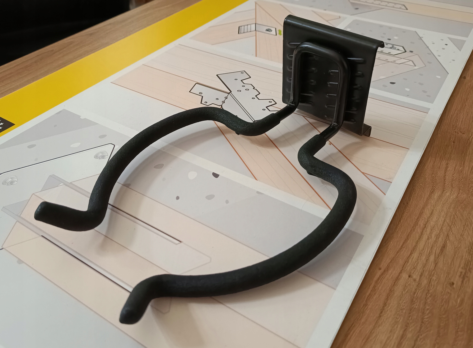 Рельс позволяет установить любой комплект гаражных вешалок системы Goliat. Это основа, к которой можно легко прикрепить все вешалки системы Goliat в любом порядке. Благодаря такому решению мы можем свободно настраивать расположение вешалок на рельсе, перемещая их в любом направлении, отсоединяя и прикрепляя в любой момент в зависимости от наших потребностей.