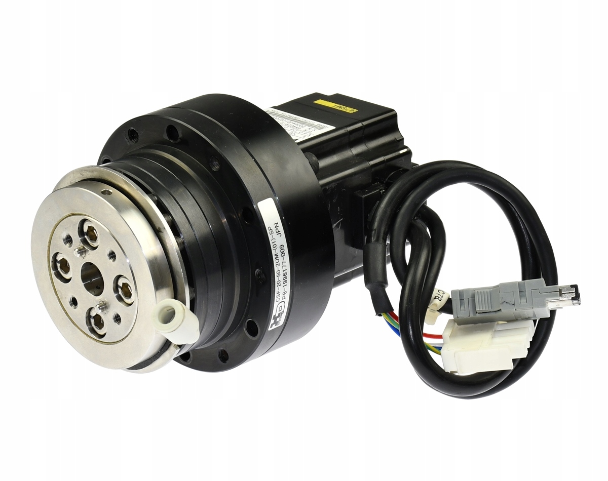 Бывший в употреблении серводвигатель известной компании YASKAWA, изделие с обозначением: SGMPH-01AAA2S. Мощность серводвигателя 100 Вт. На серводвигателе установлена планетарная передача с обозначением: CSF-20-50-2UM-(01)-SP производства компании HD SYSTEM. Этот механизм приводил в движение большой проигрыватель на высокоскоростной линии по производству электроники. Это результат демонтажа полностью работающей промышленной линии.