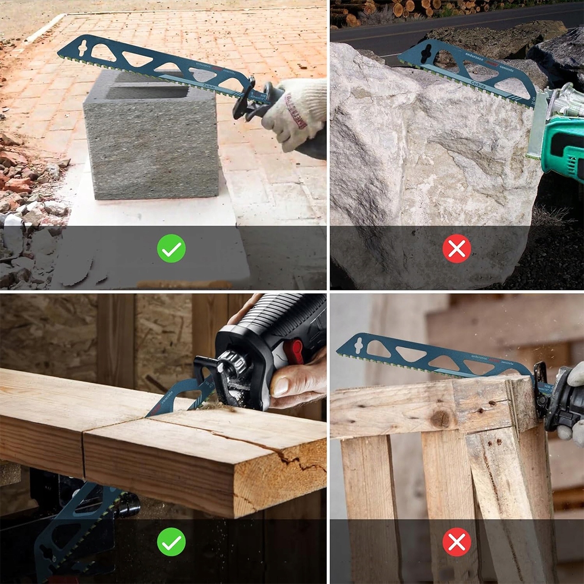 ➡ 【Профессиональное лезвие для каменных саблевых пил】 Структура с длинным лезвием легко разрезает и отделяет строительные материалы, такие как кирпичи, толщиной менее 25 см. Например, кирпич, штустерство, аэрированный бетон, пемза, итонг, поротон и их производные.