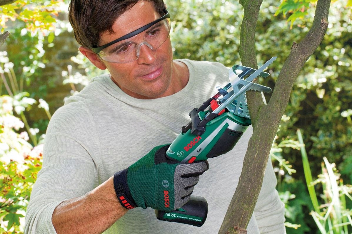 Bosch Keo Battery Saw - это универсальный и полезный инструмент для работы дома и в саду. При нажатии одной кнопки ветви с толщиной до 80 мм, а демонтированный крючок A-Grip удерживает ветви, которые не поддерживают, так что пользователю не приходится удерживать ветвь с другой рукой. Вы можете сделать около 190 порезов (до 15 мм).