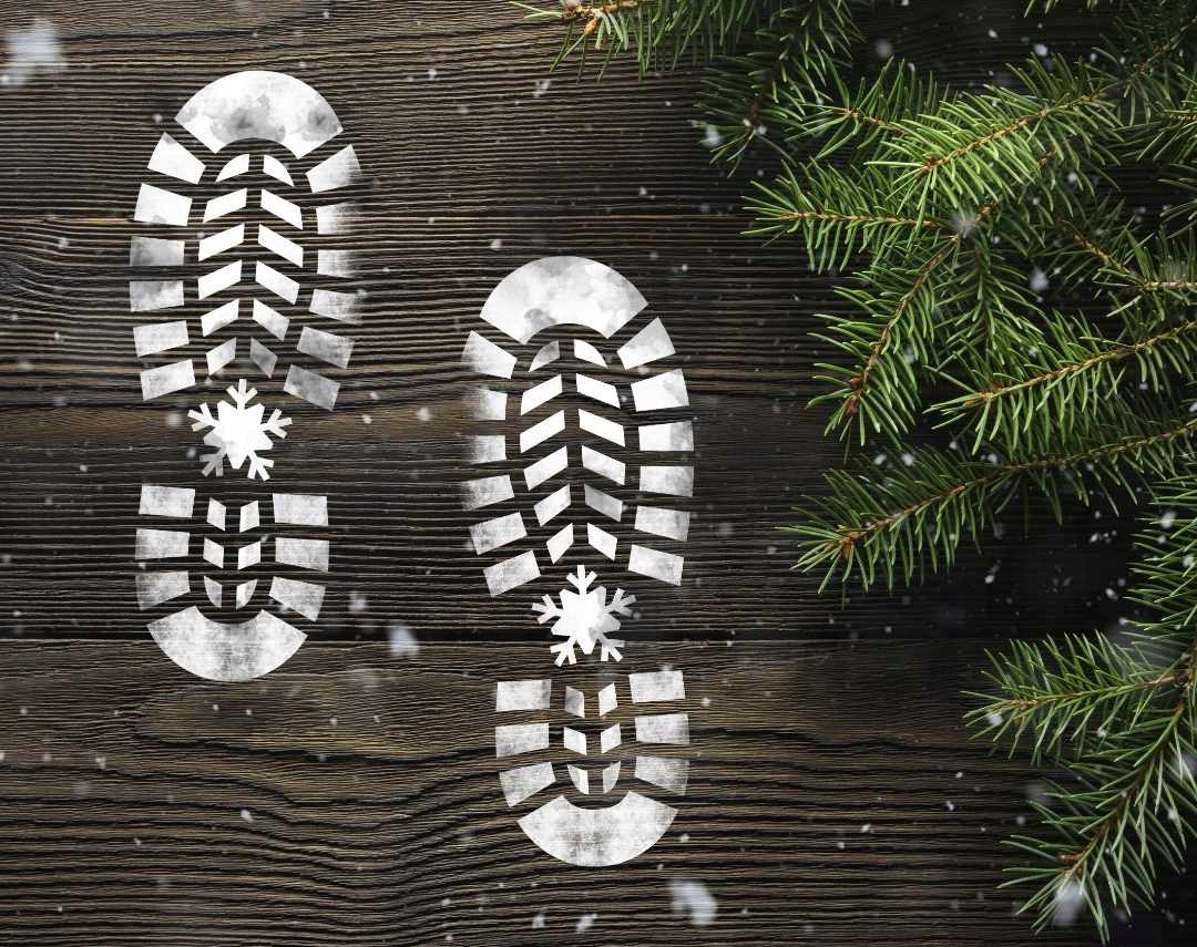 DEKORACJA SZABLON ŚLAD ODCISK BUTA ŚWIĘTEGO MIKOŁAJA SZTUCZNY ŚNIEG ELF