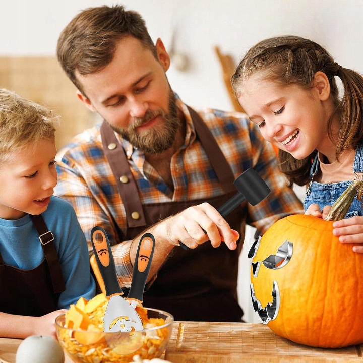 С нашим набором вам не нужно беспокоиться о безопасности детей. Это весело, которое предоставляет развлечения без каких -либо опасных инструментов! Развивайте творчество вашего ребенка благодаря нашим наборам вырезания тыквы.