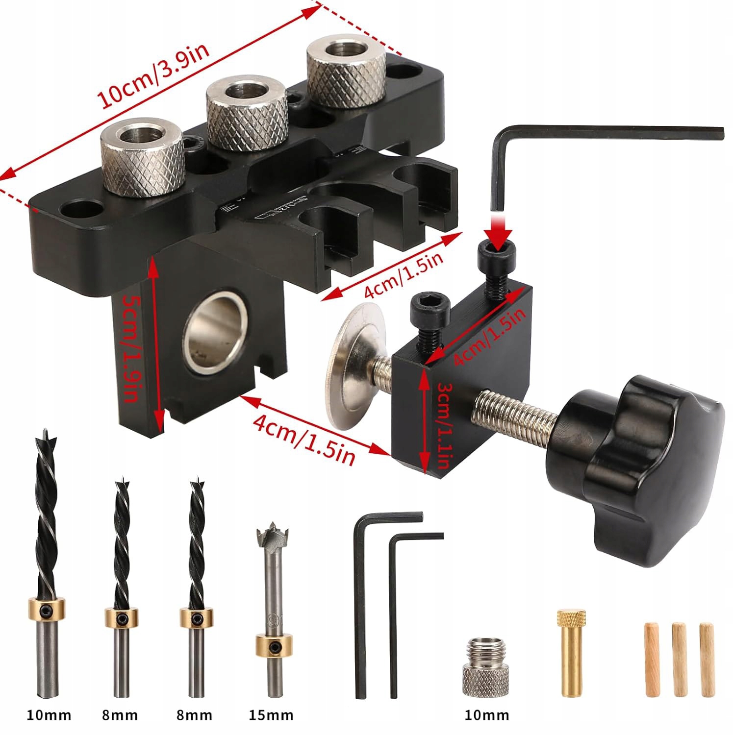 ✅ Это придает различные потребности: h2> - Этот набор буровых инструментов для деликатной деревообработки оснащен 8 мм, 10 мм и 15 мм. Each hole guide is equipped with a toughened steel sleeve.
