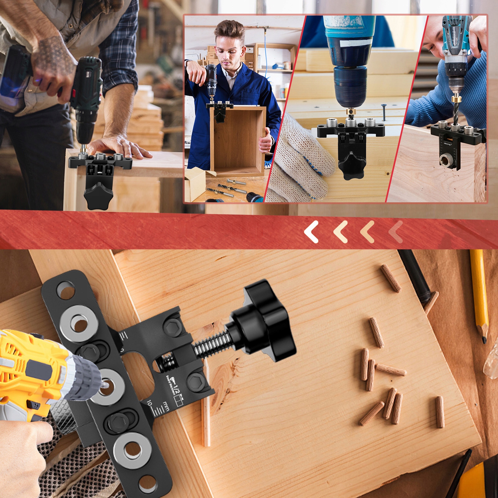 【Универсальное использование】Этот универсальный инструмент, оснащенный направляющей для вертикального сверления, предлагает варианты позиционирования, сверления и соединения. Съемный шаблон позволяет легко позиционировать и сверлить отверстия для точного размещения отверстий в различных местах и обеспечивать точную установку крепежных элементов.