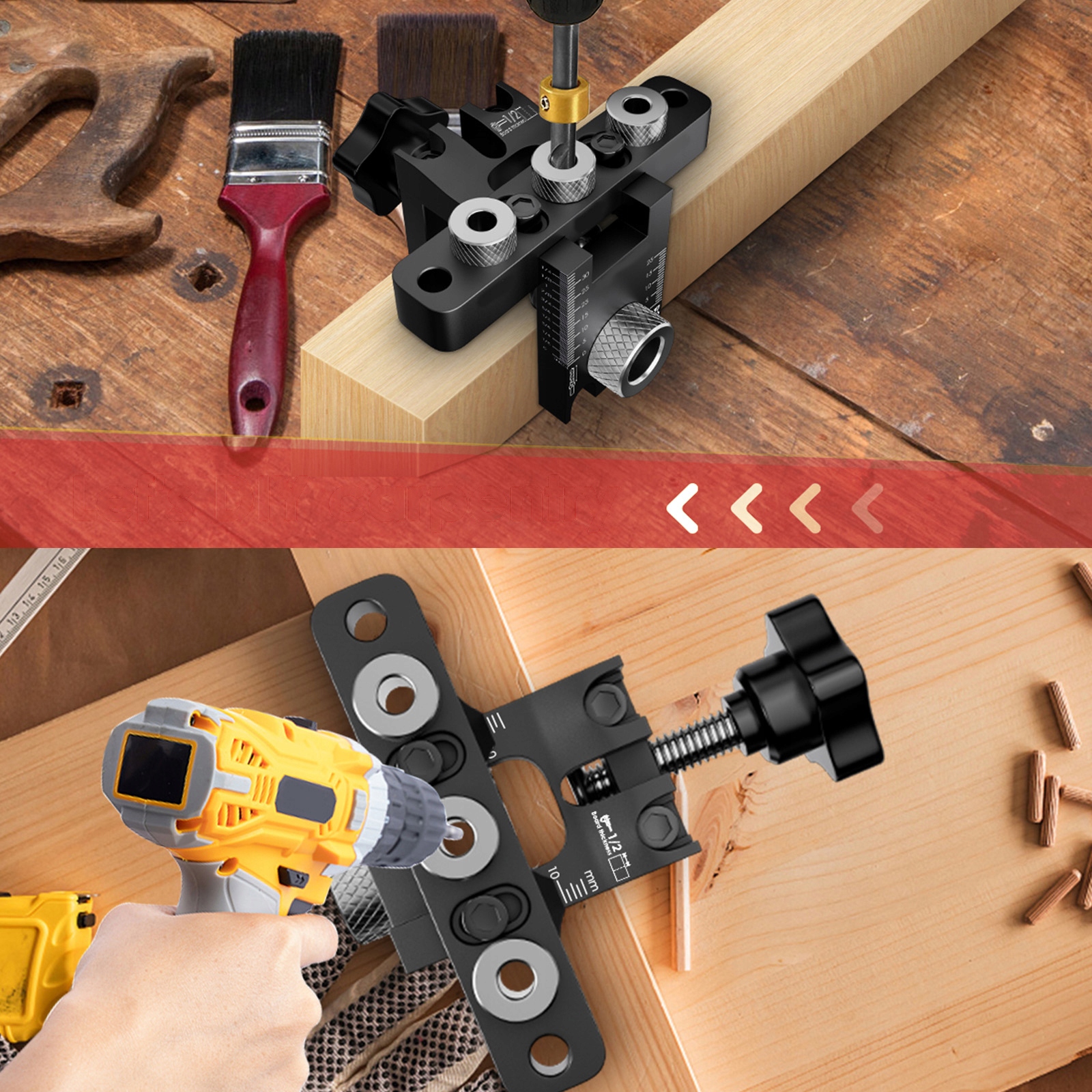 Шаблон для сверления деревянных отверстий под дюбели 8/10/15 мм для изготовления мебели — шаблон для сверления по дереву 3 в 1, точные отверстия для дюбелей, вспомогательное средство для сверления (с позиционирующим зажимом и ударной дрелью)