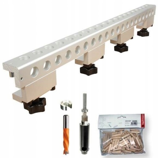Устройство можно использовать с предметами шириной от 18 до 45 мм, это особенно оцените вы при работе с массивной древесиной. Центры отверстий находятся на расстоянии 9 мм от внутреннего края изделия. Уникальный сверлильный шпиндель позволяет использовать сверла из твердого сплава различных размеров от 3 до 12 мм. Благодаря возможности использования сверла разного диаметра вы можете сверлить отверстия для дюбелей, конфирматов, фурнитуры, петель, опор для полок или шурупов и еврошурупов.