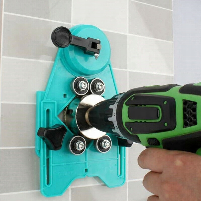Устройство оснащено четырьмя полностью регулируемыми независимыми подшипниками. Предназначен для работы с кольцевыми пилами диаметром от 4 до 83 мм. Линейка крепится с помощью прочной присоски. Благодаря этому вы сможете делать отверстия даже на уже оклеенной стене.