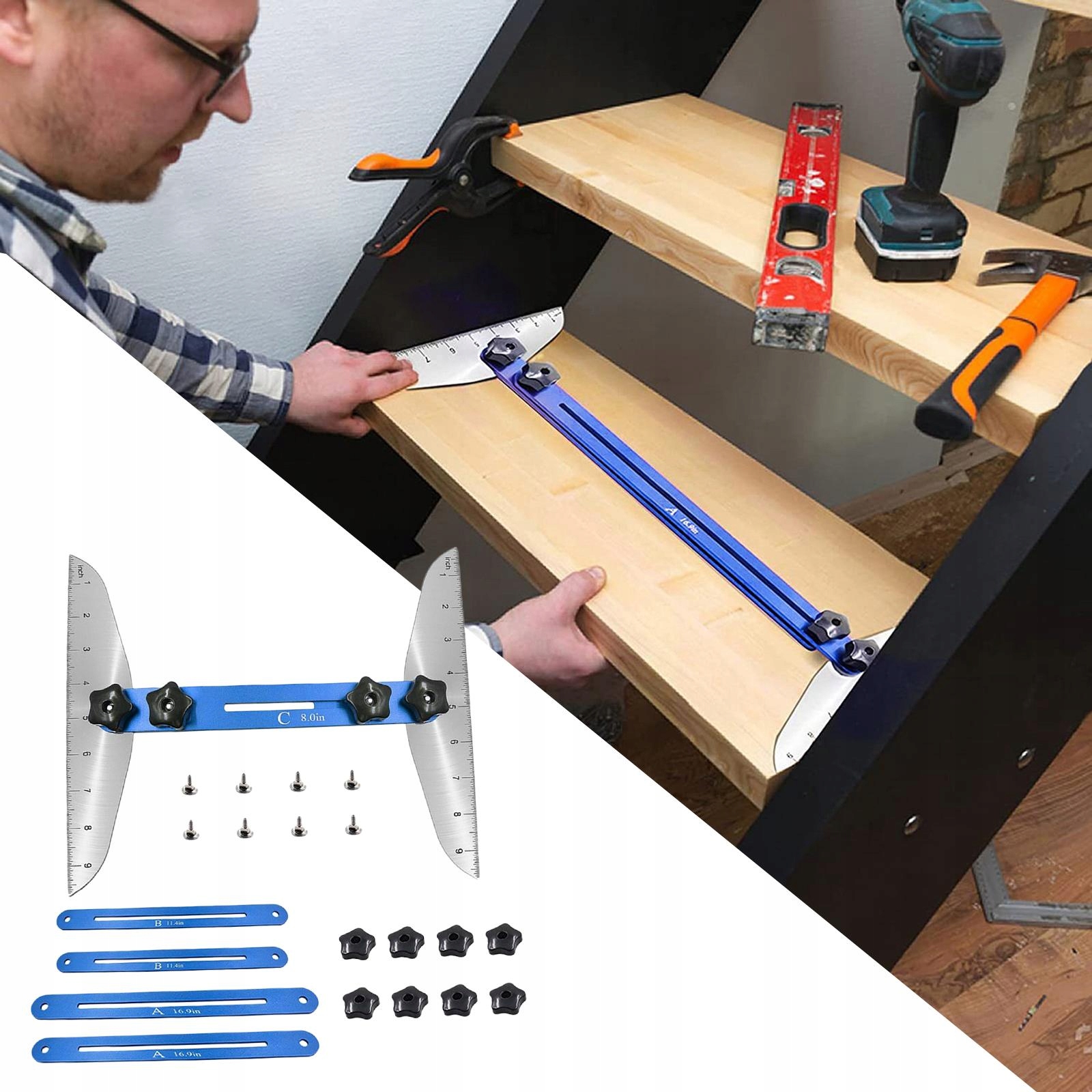 Домашние инструменты для разрезания лестницы. Набор лестничных шаблонов, регулируемый диапазон составляет 11-60 дюймов.