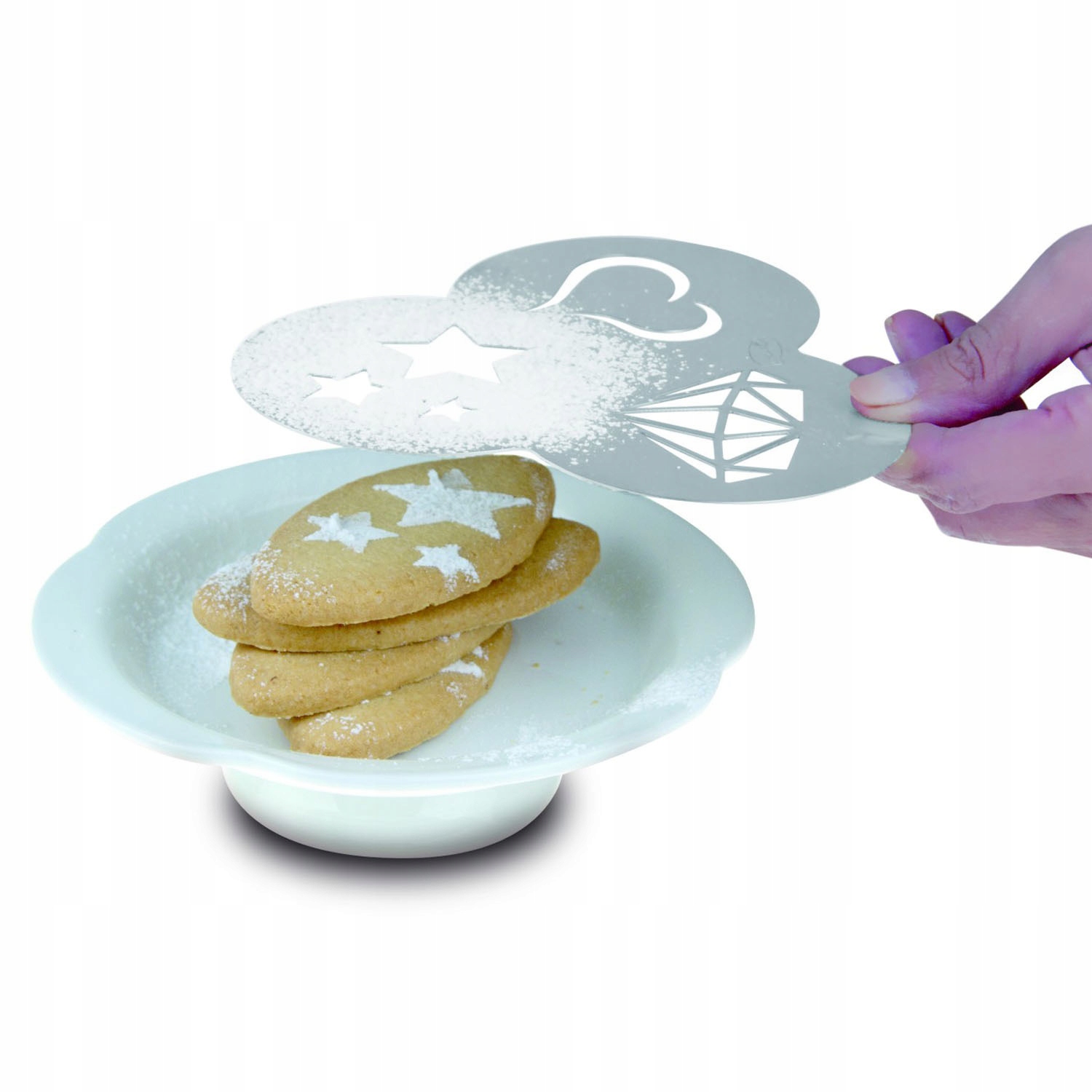 Шаблон из нержавеющей стали с тремя узорами (ромб, сердце, звезды) для украшения капучино или печенья с какао или сахарной пудрой. Можно мыть в посудомоечной машине. Товар может иметь следы производства, никоим образом не влияющие на его удобство использования. Материал: нержавеющая сталь. Общие размеры: 22,8x15x0,2 см. Размеры: 14x0,07x13,3 см. Общий вес: 0,090 кг. Вес нетто: 0,076 кг.