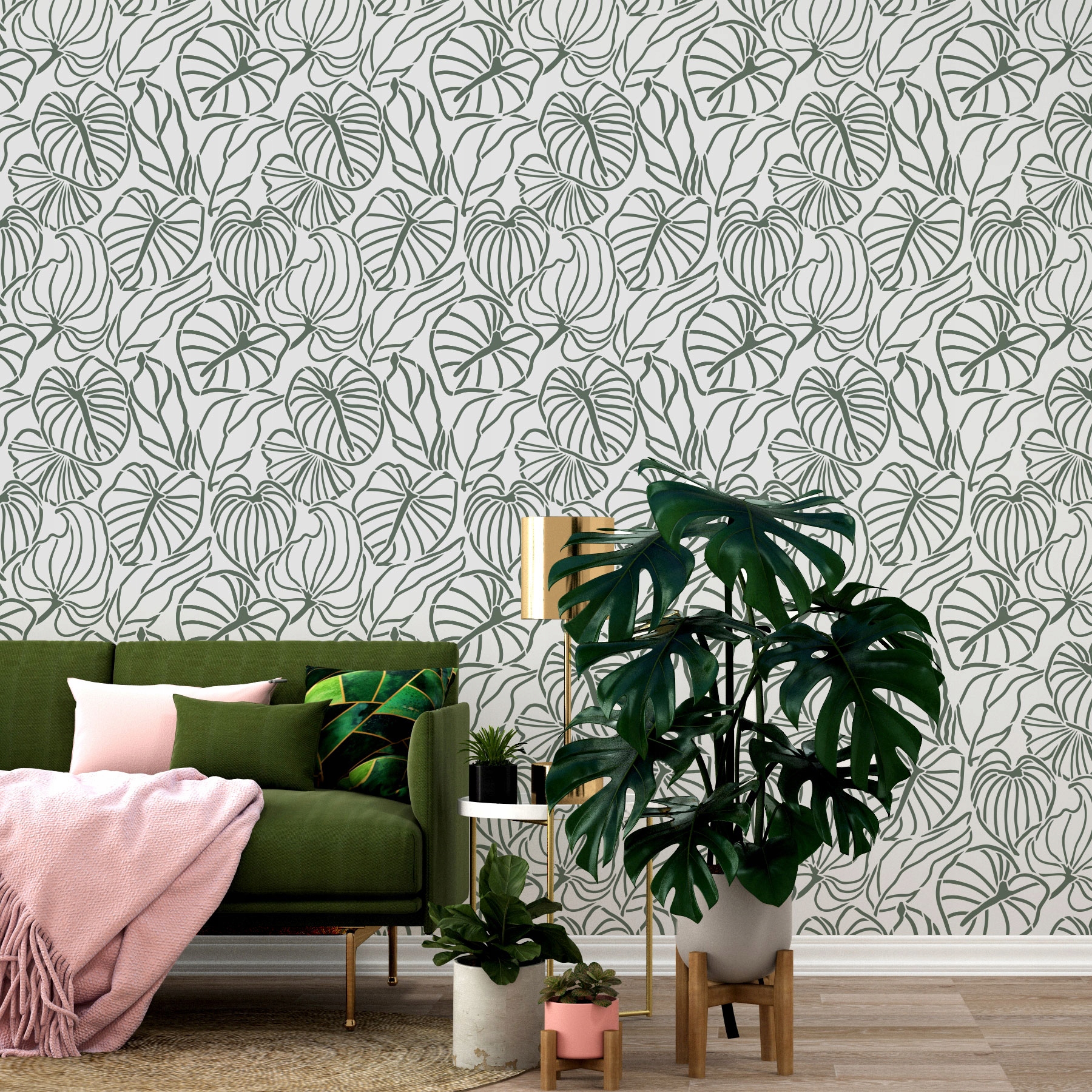 Придайте своей стене совершенно новый вид, используя повторяющийся узор тропических листьев. Этот простой метод изменит ваш интерьер до неузнаваемости. Листья в стиле деко — это вечный растительный мотив в совершенно новой версии — внешне другой, но столь же восхитительной.