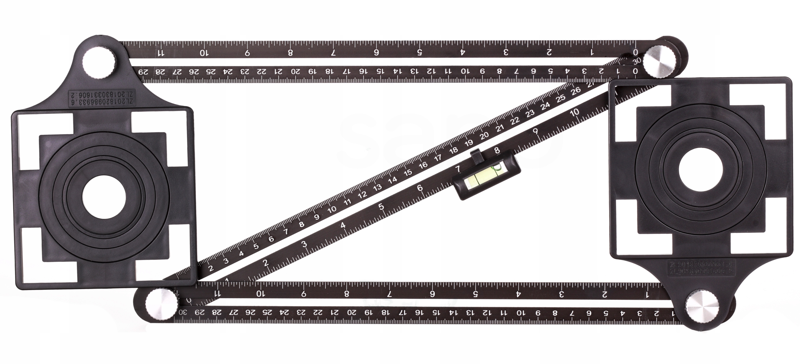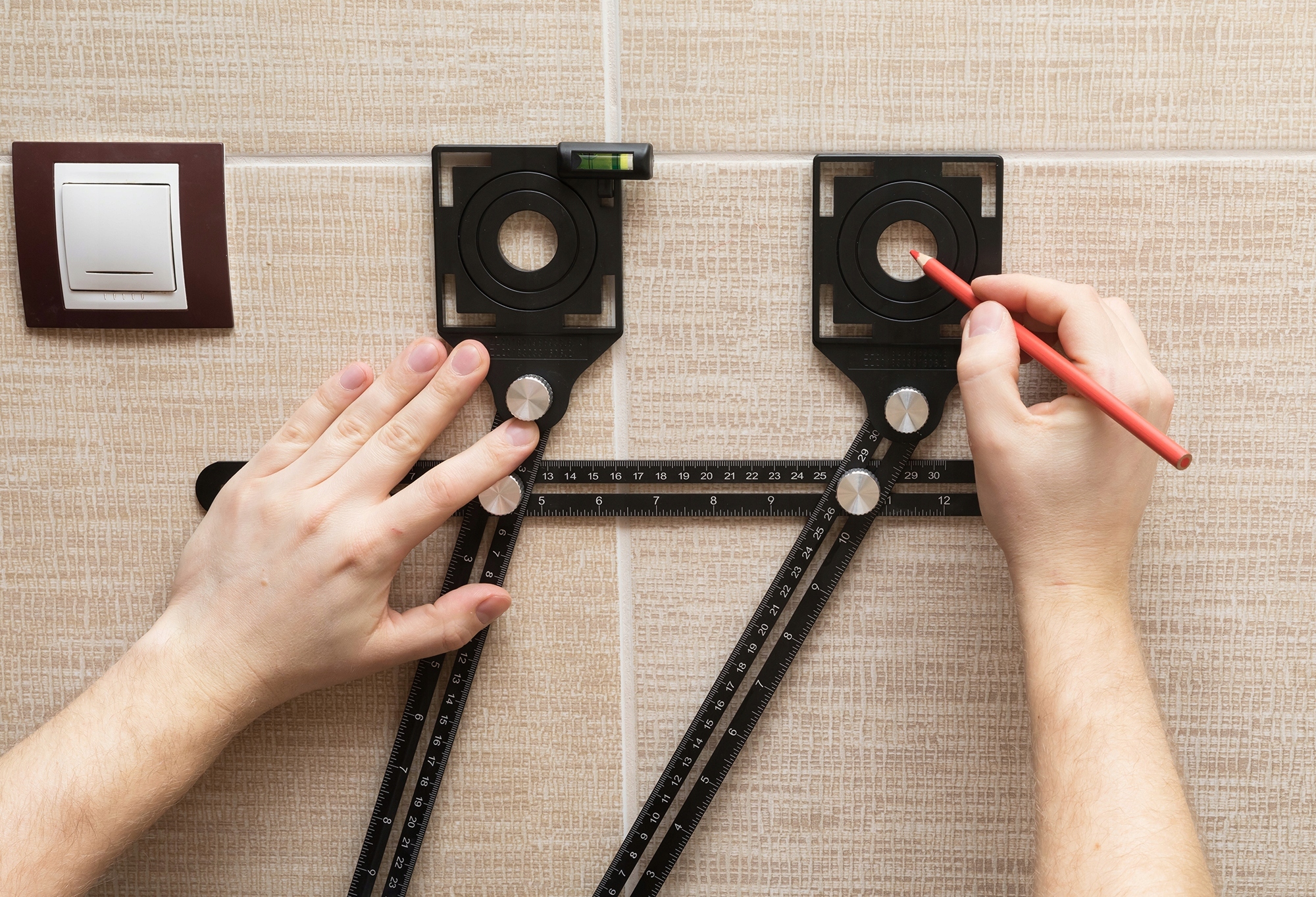 Штангенциркуль, маркер, шаблон, шаблон отверстий для плитки + уровень