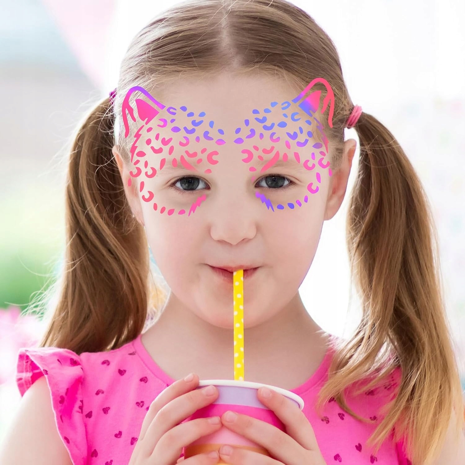 2.【Высококачественный материал】 Наши трафареты для макияжа изготовлены из высококачественного, мягкого и гибкого пластика. Гладкая поверхность не царапает кожу и пригодна для многоразового использования. Используете ли вы аэрозольную краску или традиционную детскую косметику, эти трафареты долговечны и устойчивы.