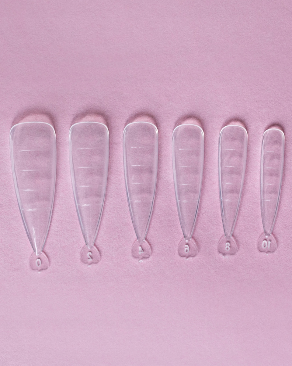 - Формы изготовлены из прозрачного, гибкого материала, поэтому вы можете легко придайте стилизованным ногтям форму и равномерно закрепите их.