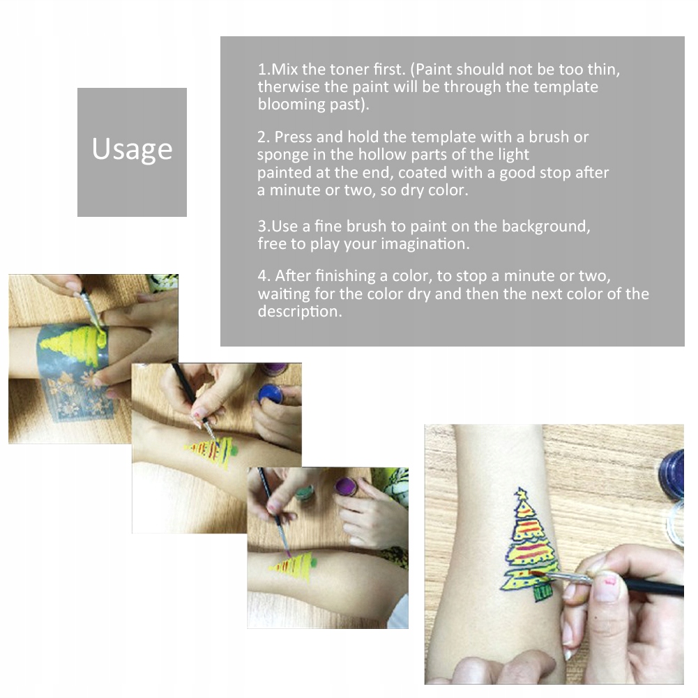 Описание: 7 стилей/набор трафаретов для рисования лица с различными узорами: цветок, бабочка и т. д. подчеркнут уникальный и красивый вид вашего лица и тела.