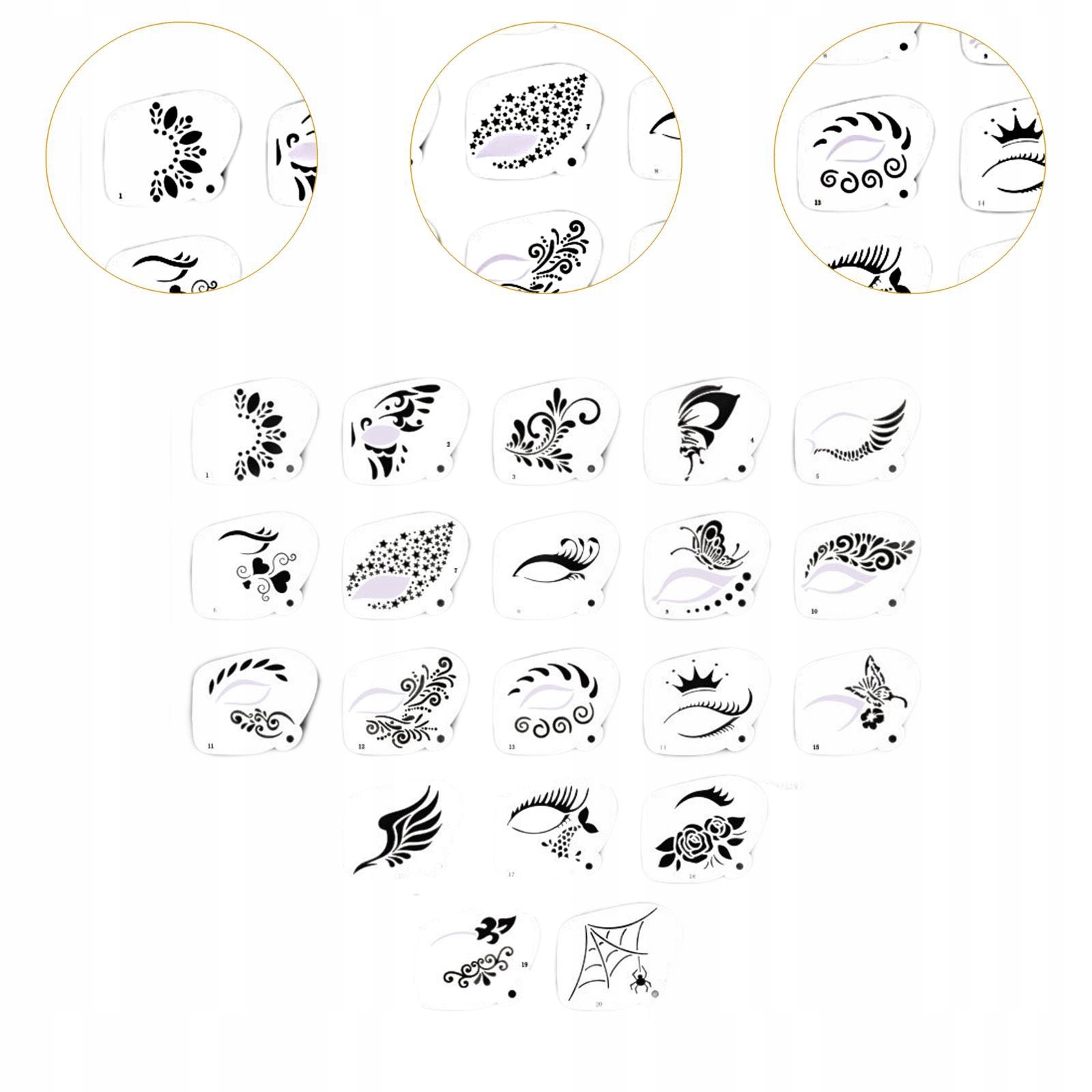 [много дизайнов]: шаблоны рисования лица создают различные дизайны рисунки лица, различные стили и узоры