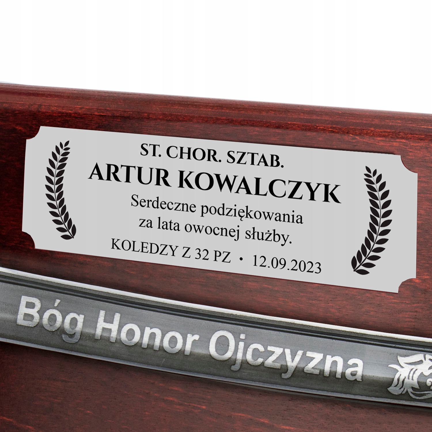 Точная копия польской "Ludwikówka" wz. 1934 года в ножнах на деревянном столе. Сабля – изделие, изготовленное из высококачественных материалов. Наверняка это будет отличная идея для подарка священнику, папе, дедушке, чиновнику. >или учитель. Стол полностью деревянный, с местом для сабли и ножен. Клинок сабли украшен красивым орнаментом с надписью «Бог, Честь, Родина». Людвикувка — последняя боевая сабля, использовавшаяся в кавалерийских полках. Название происходит от места производства – Гута «Людвикув» в Кельце. Сабля не заточена и не предназначена для этой цели. Вместе с индивидуальной гравировкой, нанесенной на доску, она станет красивым и оригинальным украшением любого интерьера!