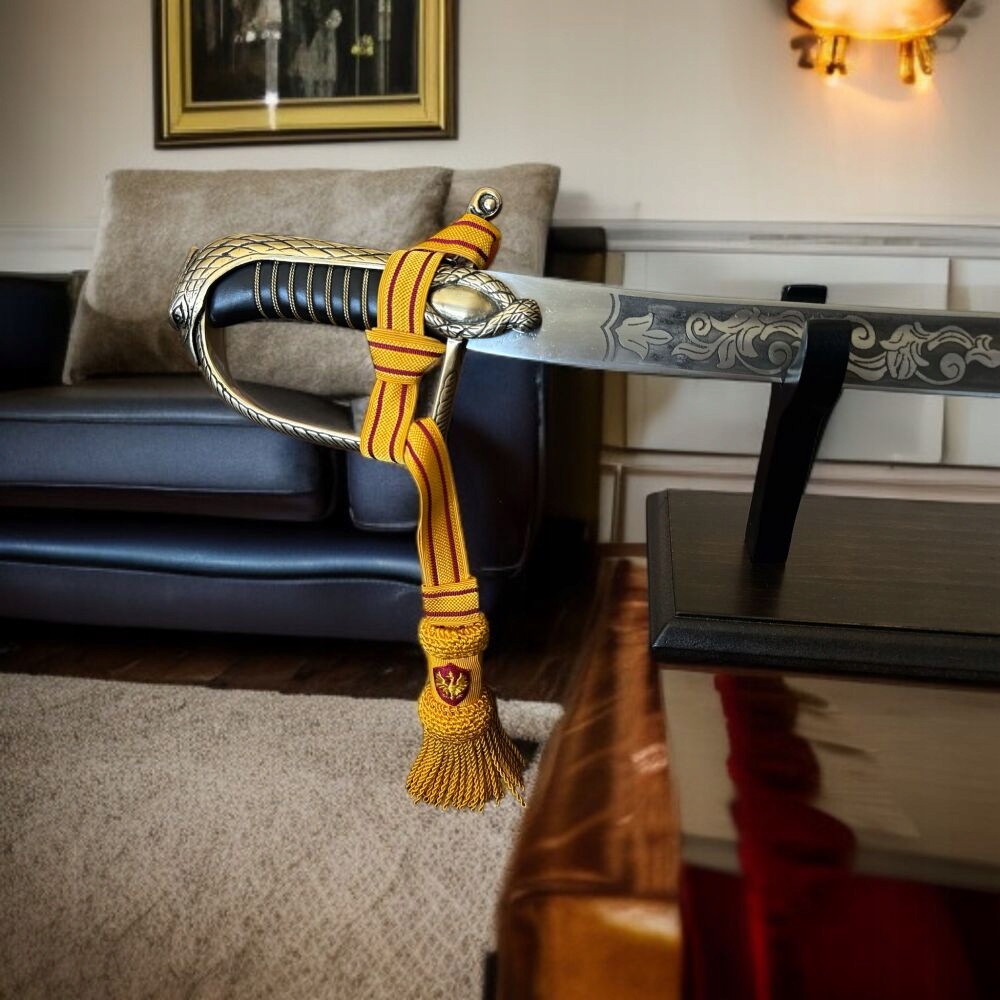 Сабли не заточен и не адаптируется для заточки (не подходит для ограждения). Клинок (лезвие) изготовлен из полированной углеродистой стали. Опрос проводится до единой, матовой, гладкой структуры. Мы рекомендуем, чтобы время от времени лезвие сохранялось с очень тонким слоем оливкового или другого масляного агента, посвященного обслуживанию стали (это поможет поддерживать высококачественный продукт).