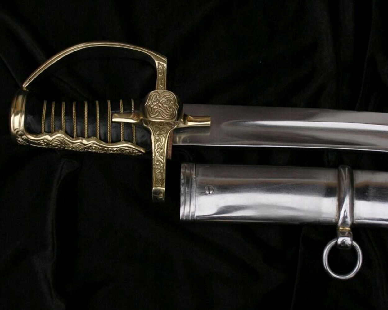 Ножны: ПОЛИРОВАННАЯ УГЛЕРОДИСТАЯ СТАЛЬ (требует ухода). Ножны изнутри отделаны кожей. Вы можете хранить саблю в ножнах, не беспокоясь о коррозии.