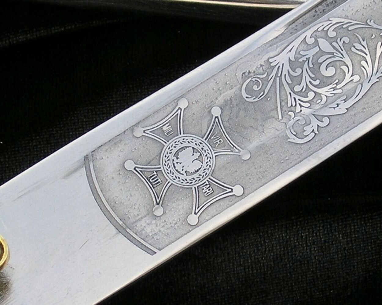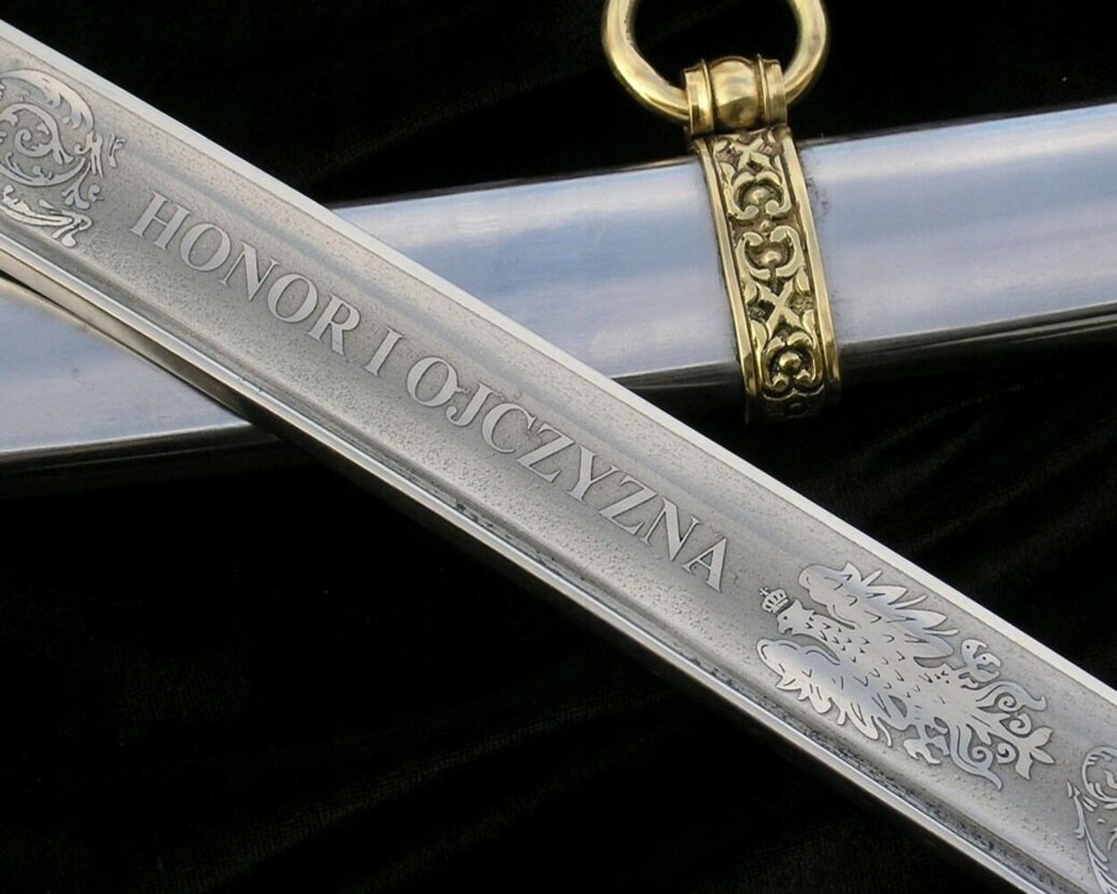 ЛЕЗВИЕ: гравировка с одной стороны - растительные мотивы - орел в короне, надпись «Честь и Родина» и крест Virtuti Militari