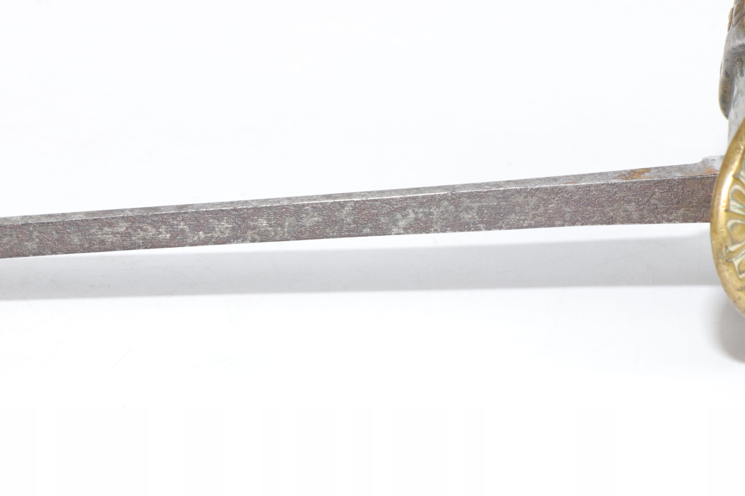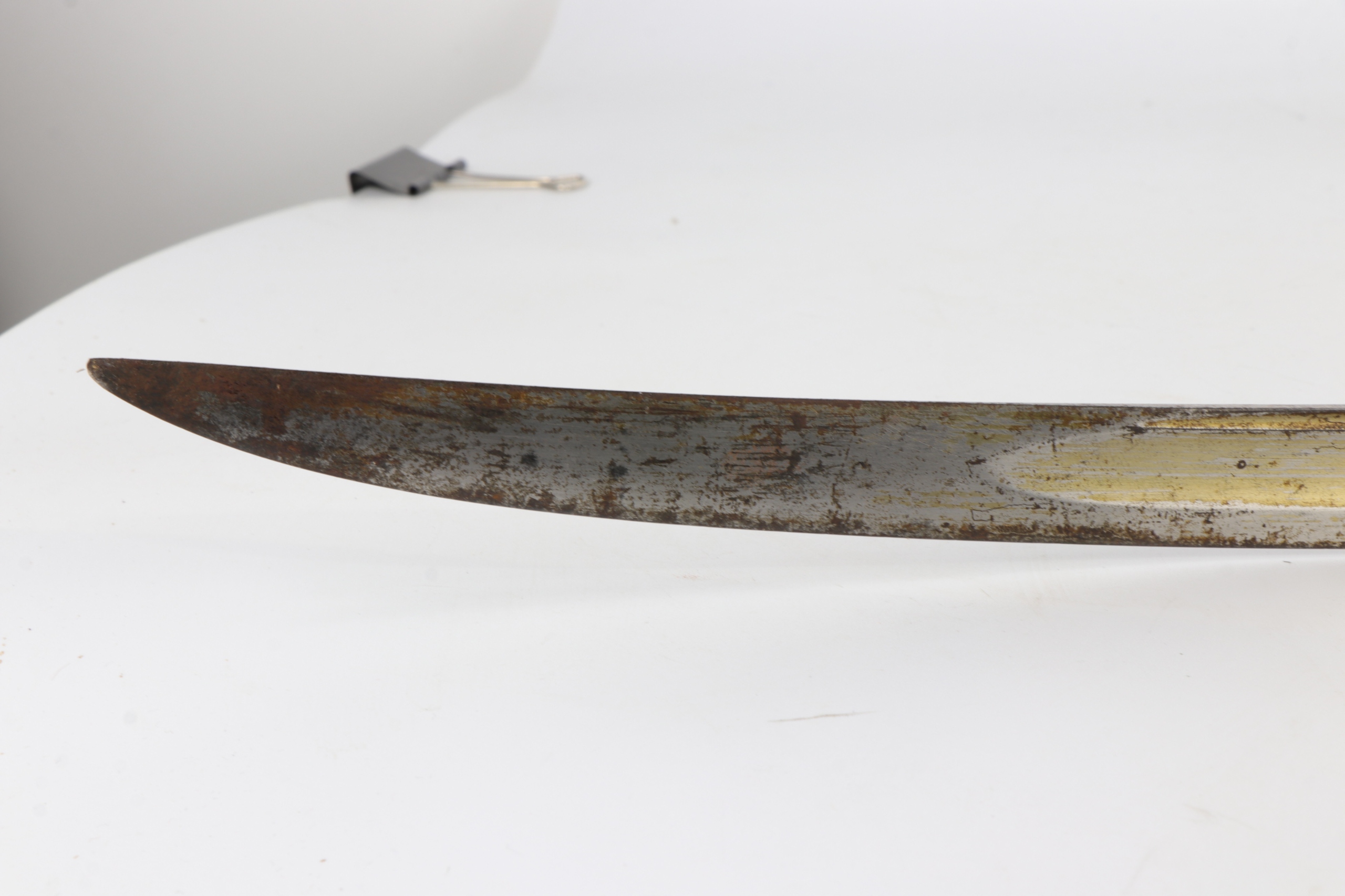 Как можно увидеть на изображениях. Лезвие для очистки с незначительными следами коррозии. Трехнутая латунная ручка коса