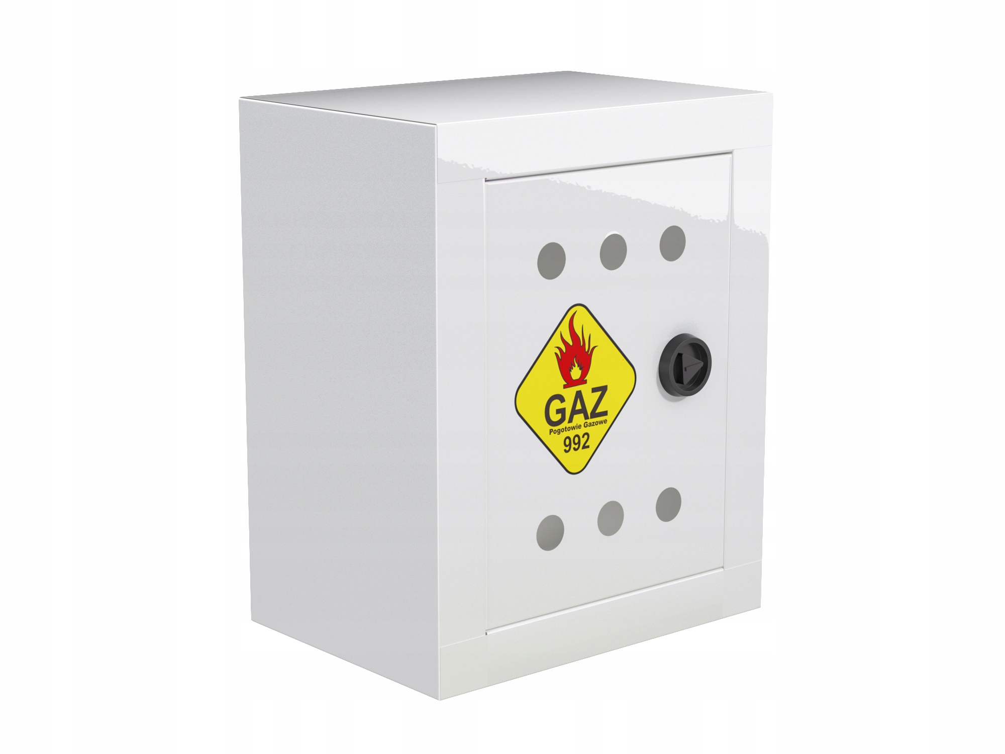 Газовые шкафы изготовлены полностью из оцинкованной стали листовой металл толщиной 0,8 мм/0,6 мм. Кроме того, он был покрашен порошковой краской. Дверь закрывается на цилиндровый замок с ключом (один дополнительный ключ).