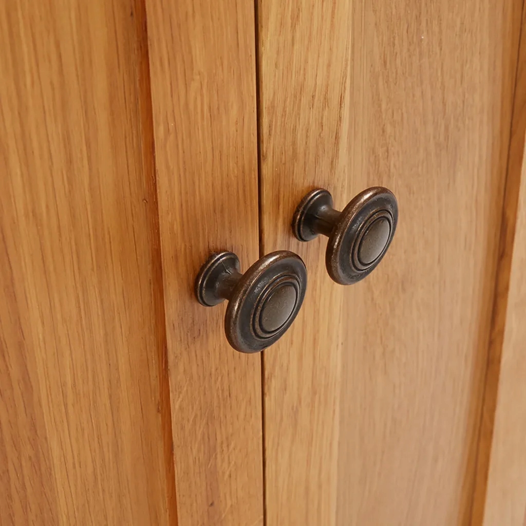 Шкаф профессионально изготовлен из твердого дуба, благодаря которому он тверд и устойчив к течению времени. Он обеспечивает достаточно места для организации и хранения книг, компакт -дисков и DVD.