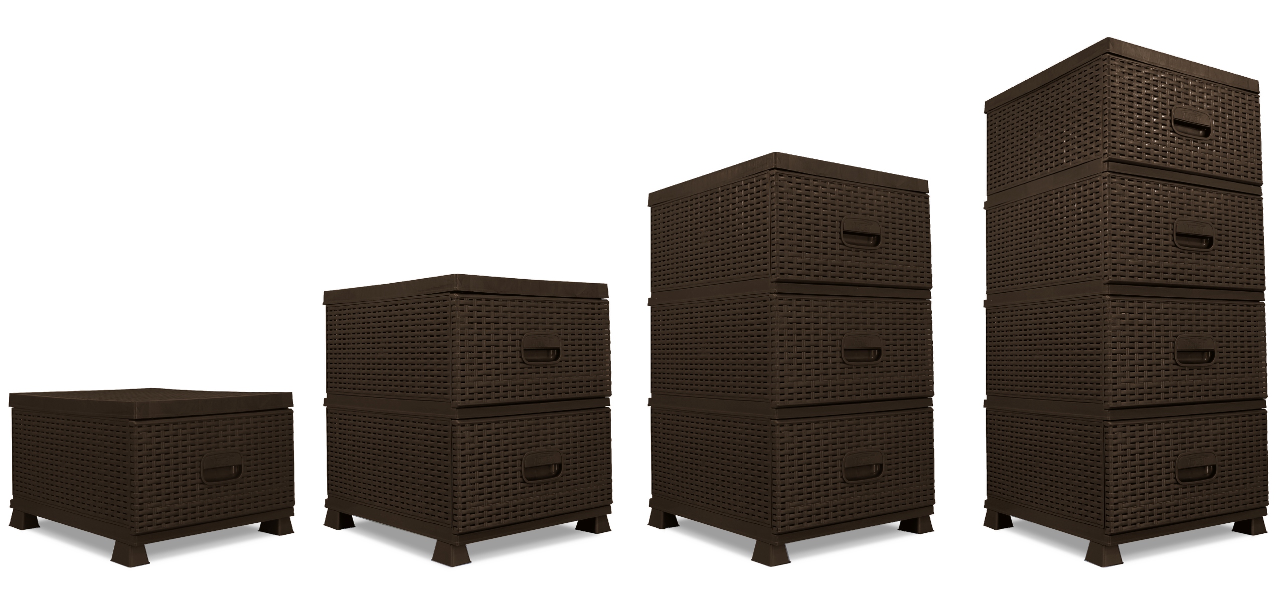 Комод можно собрать любым способом. Вы также можете соединить 2 комода, чтобы получилась колонна с 8 ящиками