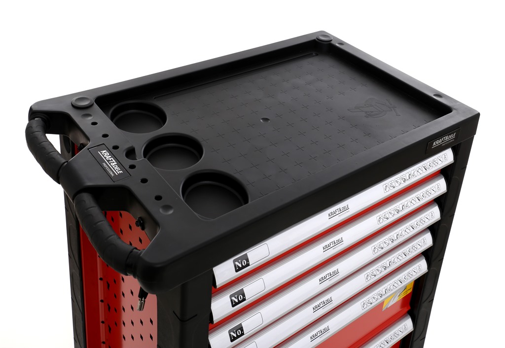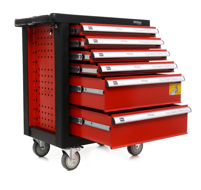 Шкаф для мастерской от известной компании KRAFT&DELE – это профессиональный инструмент, который должен быть в каждой автосервисе. Его характеризуют эстетические, современные и инновационные решения. Он позволяет поддерживать порядок на рабочем месте и защищает инструменты от кражи и порчи!! (коляска оснащена замком от открывания, который можно открыть только специальным ключом). Тележка имеет эргономичные ручки, адаптированные к самым тяжелым условиям, интегрированные с верхними полностью выдвижными ящиками на подшипниках. Все ящики закрываются на центральный замок! Кроме того, шкаф имеет двойные стенки и замки для ящиков. Коляска оснащена 4 поворотными колесами, что позволяет очень легко ее транспортировать. Дополнительно имеются углы, защищающие от случайных повреждений, например, кузова автомобиля. Столешница изготовлена из полипропилена.