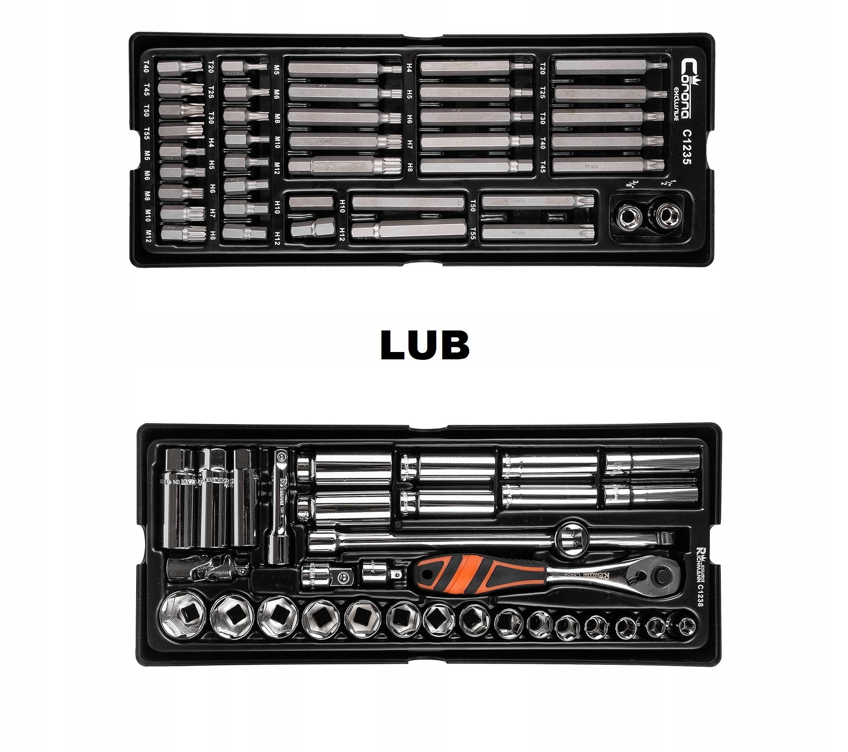 C1207 + лоток - набор бит-шестигранников H4-H14, торцевая головка TORX T20-T70 и торцевая головка TORX E4-E24, сталь биты S2, 55 элементов