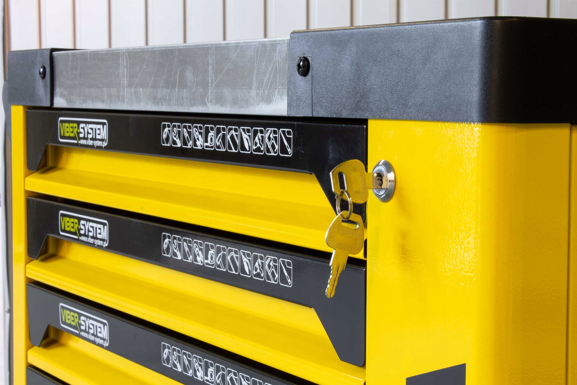 Viber-System SZN254 — инструментальная тележка премиум-класса, созданная для требовательных механиков, технических служб и пользователей, ценящих порядок и эффективную работу. Прочная стальная конструкция SPCC, отделанная прочным порошковым покрытием, обеспечивает стойкость к интенсивному использованию, ударам и коррозии - идеальный выбор для профессиональных мастерских и гаражей.