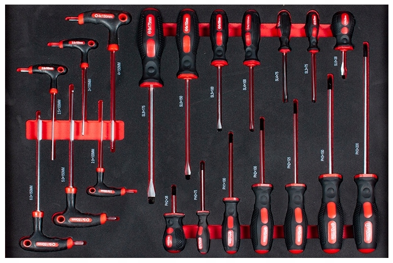 - Установите 7 шт. Плоские отвертки в размерах: 6x38 - 3x75 - 4x75 - 4x100 - 5x100 - 6.0x150 - 8x175