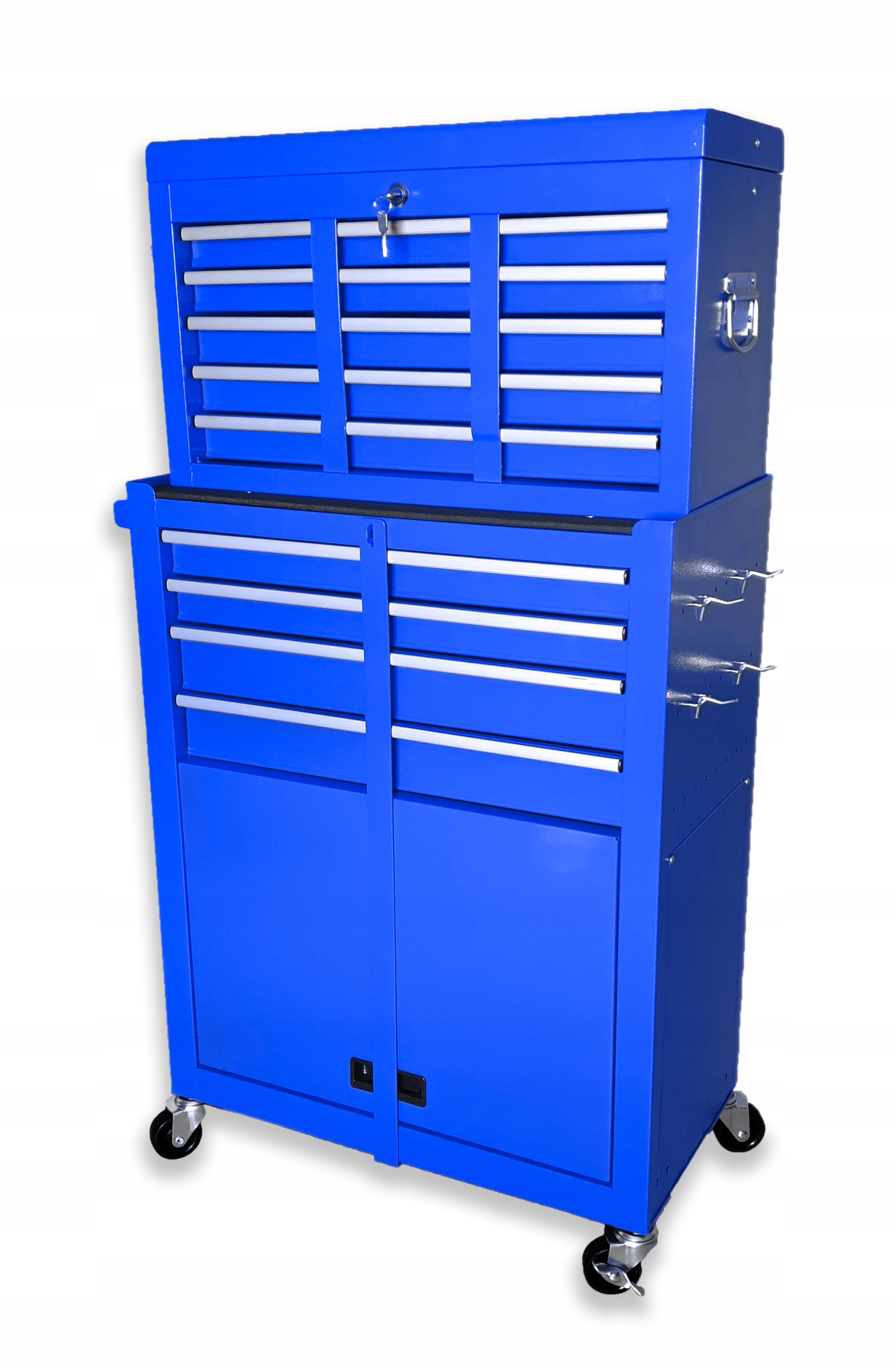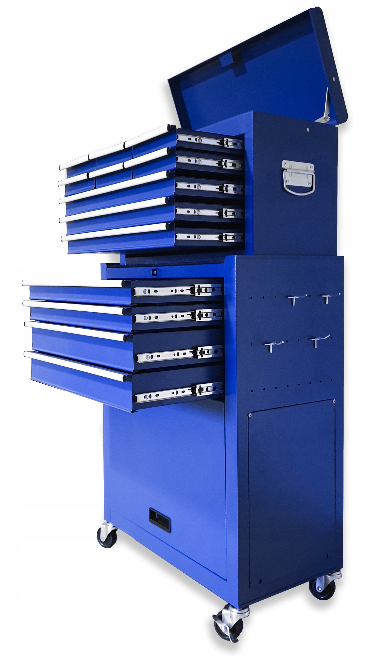 Тележка для инструментов - Шкаф для мастерской с 13 ящиками СИНИЙ - ПОДНЯТЫЙ