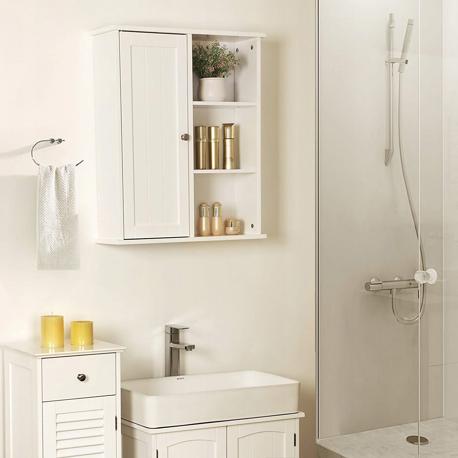 ШКАФ ДЛЯ ВАННОЙ КОМНАТЫ ПОЛКА ДЛЯ ВАННОЙ КОМНАТЫ БЕЛЫЙ МДФ