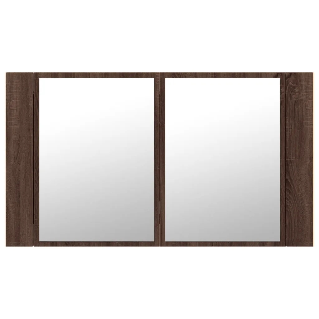 Шкаф для ванной комнаты с зеркалом и светодиодным освещением RGB, коричневый дуб, 80x12x