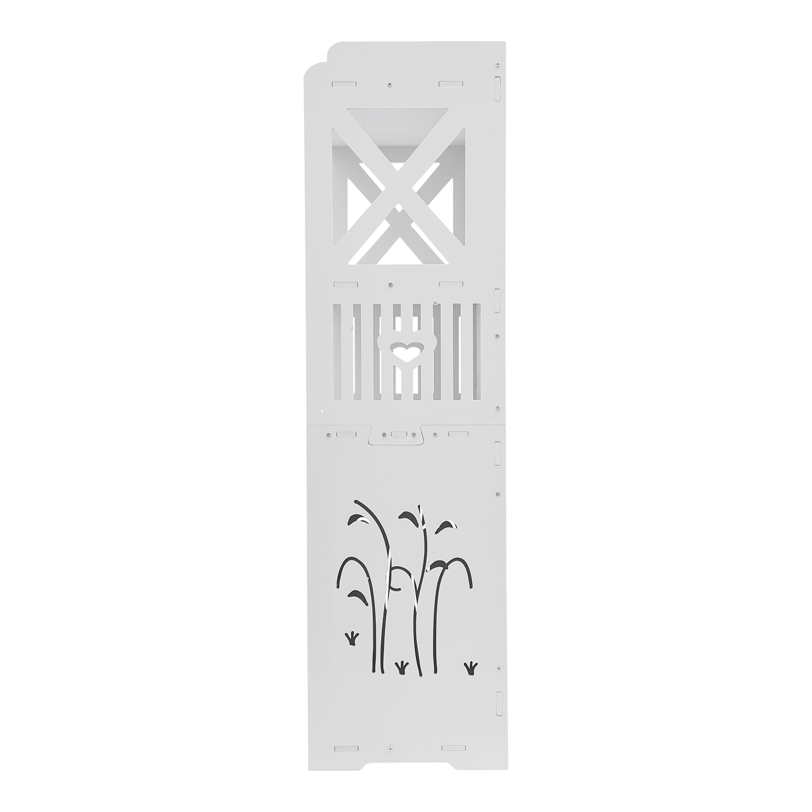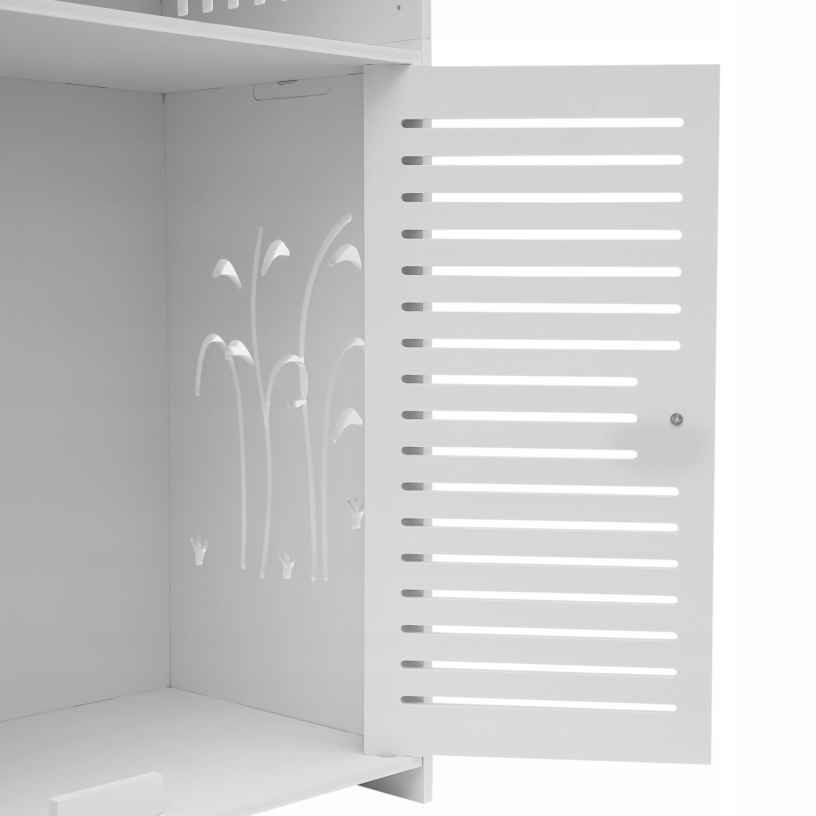 Продуманный дизайн: Тонкая конструкция сетчатого отверстия способствует потоку воздуха и уменьшает рост бактерий. Практичная ручка обеспечивает удобное и безопасное прикосновение, облегчая открытие и закрытие дверцы шкафа. Благодаря небольшому размеру, высокому и тонкому дизайну он помещается в относительно узких помещениях ванной комнаты.
