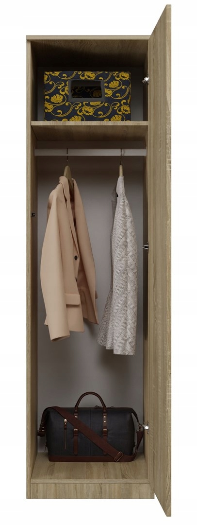 Вы цените современный дизайн и функциональность? Шкаф SD-50 — практичный предмет мебели, который найдет свое место как в спальне, где есть шкафы, так и в офисе или студии, где должно быть свое место для документов и можно спрятать верхнюю одежду. Характерными особенностями этого продукта являются, прежде всего, надежное качество изготовления, современный внешний вид и УНИВЕРСАЛЬНОСТЬ. Если вы решили приобрести шкаф-купе SD-50, в комплект входит штанга для подвешивания одежды и полки. В зависимости от назначения шкафа в конкретном случае, при монтаже можно выбрать подходящий вариант. Мебель изготовлена из высококачественного ламината, устойчивого к царапинам и влаге, с усилением кромок ABS. Боковины шкафа одинаковые, без отверстий снаружи, что повышает эстетику изделия.