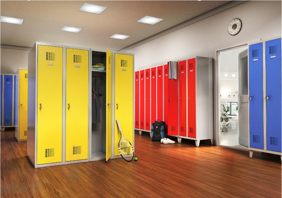 Шкаф 2-дверный оснащен 4-мя фиксированными полками. Дверь закрывается на ключевой замок.