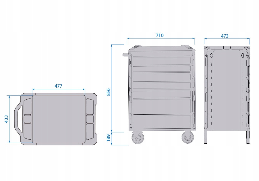 - с колесами: высота 1045 x ширина 710 x глубина 473 мм