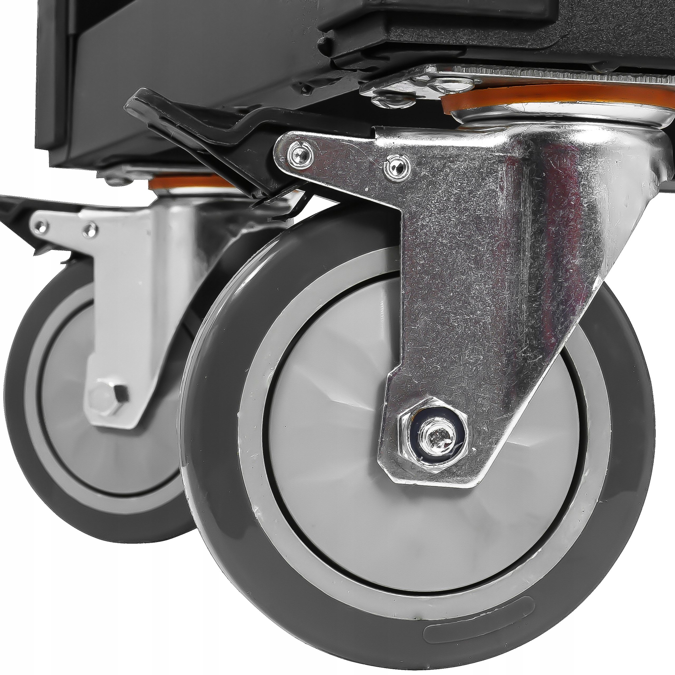 - 2 фиксированные колеса и 2 крутильные колеса с диаметром 125 мм, оснащенного тормозом