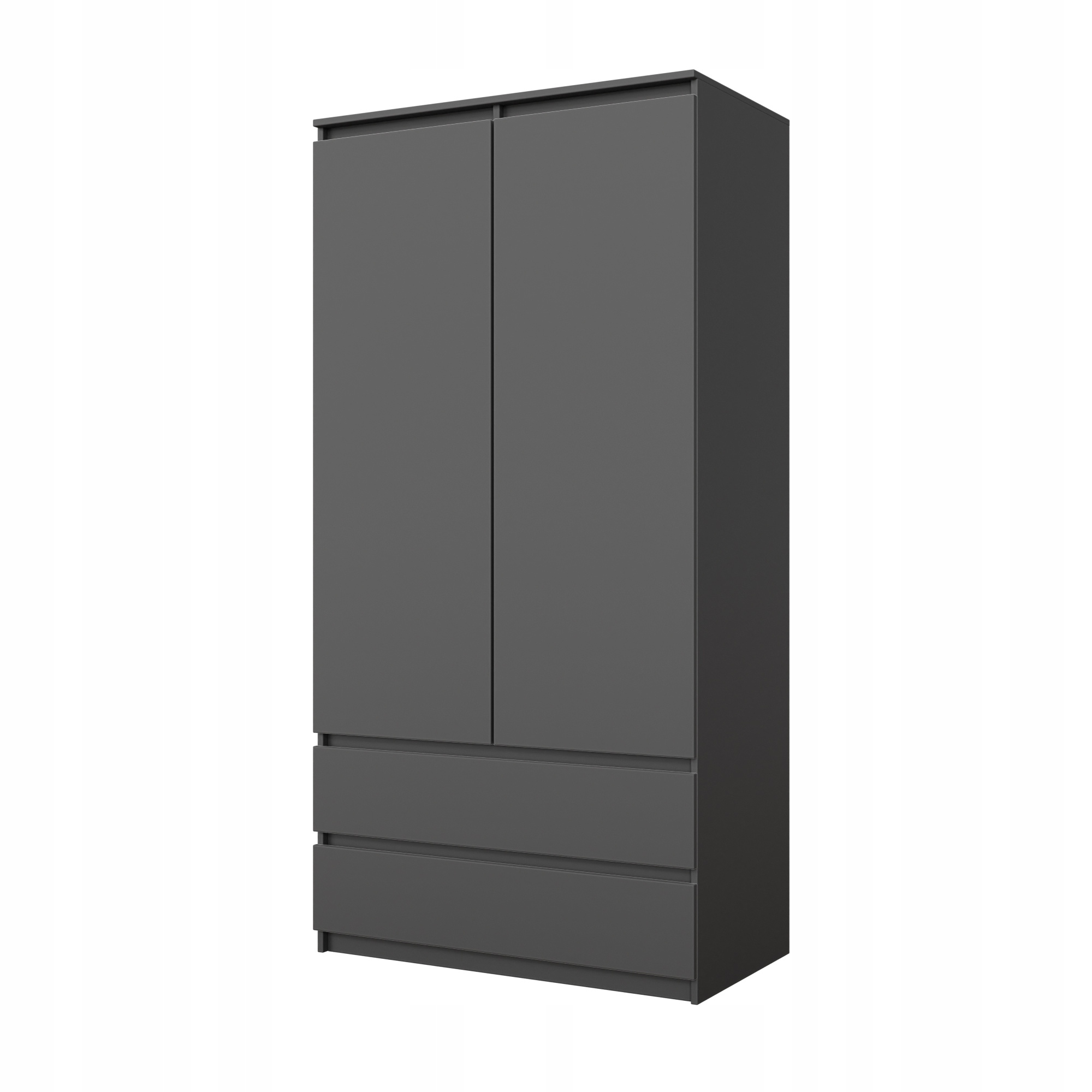 Шкаф Джоэль имеет ширину 90 см, высоту 180 см и глубину 50 см. Имеет две дверцы, два вместительных ящика и вешалку для одежды. Корпус и фасады цвета антрацит. Этот современный цвет придает гардеробу вневременной и красивый вид, который подойдет к любому современному или классическому интерьеру. Благодаря функциональному дизайну он предлагает достаточно места для хранения одежды и аксессуаров. Этот шкаф станет прекрасным дополнением любой спальни и прекрасно впишется в самые разные стили интерьера.