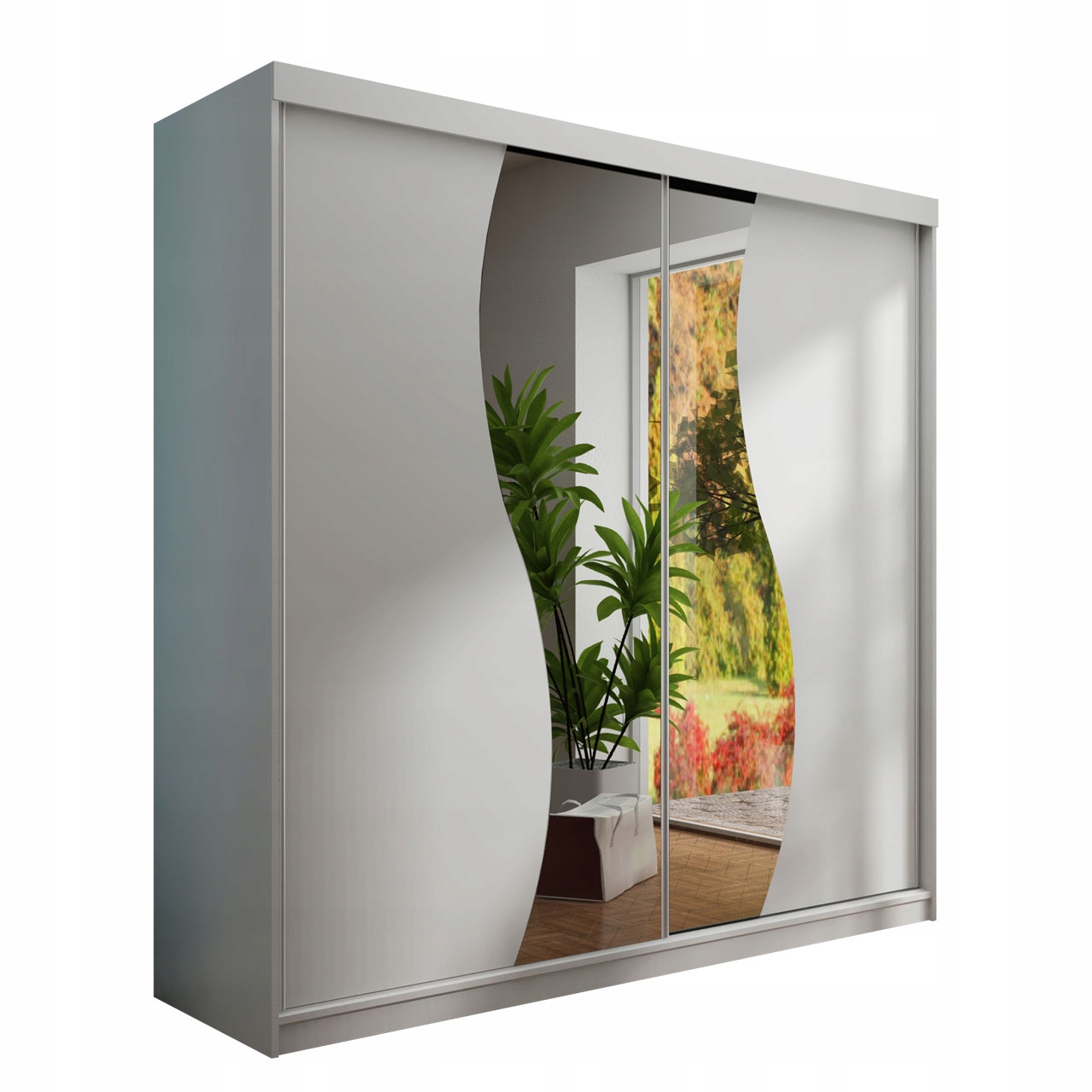 Шкаф оснащен системой раздвижных дверей, что позволяет быстро и легко его использовать. Зеркало на фасадах – украшение и практичное дополнение.
