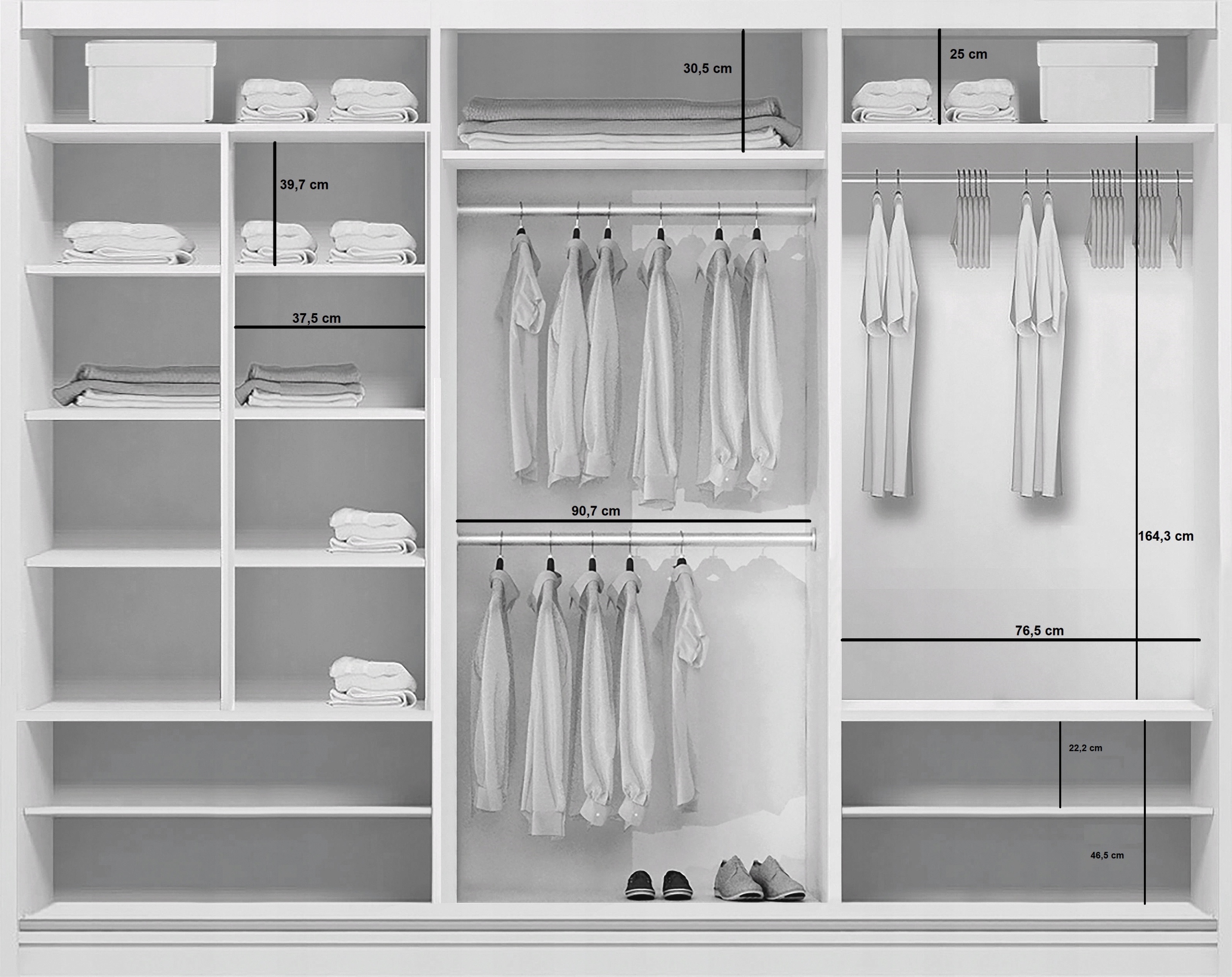 Шкаф изготовлен из ламинированного картона толщиной 16 мм. Здесь используется система раздвижных дверей очень хорошего качества от LAGUNA. Он оснащен алюминиевыми направляющими, нижними тележками на подшипниках, а кроме того, двери имеют алюминиевые ручки, которые облегчают использование и предотвращают вытягивание двери.