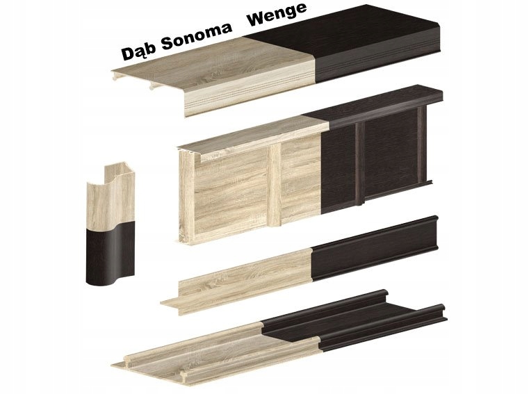 В комплект входит фурнитура и профили в соответствии с таблицами ниже, но вы также можете купить соединительный профиль Н, если хотите соединить в одном створке два и более разных типов досок, или например. доска с зеркалом/стеклом.