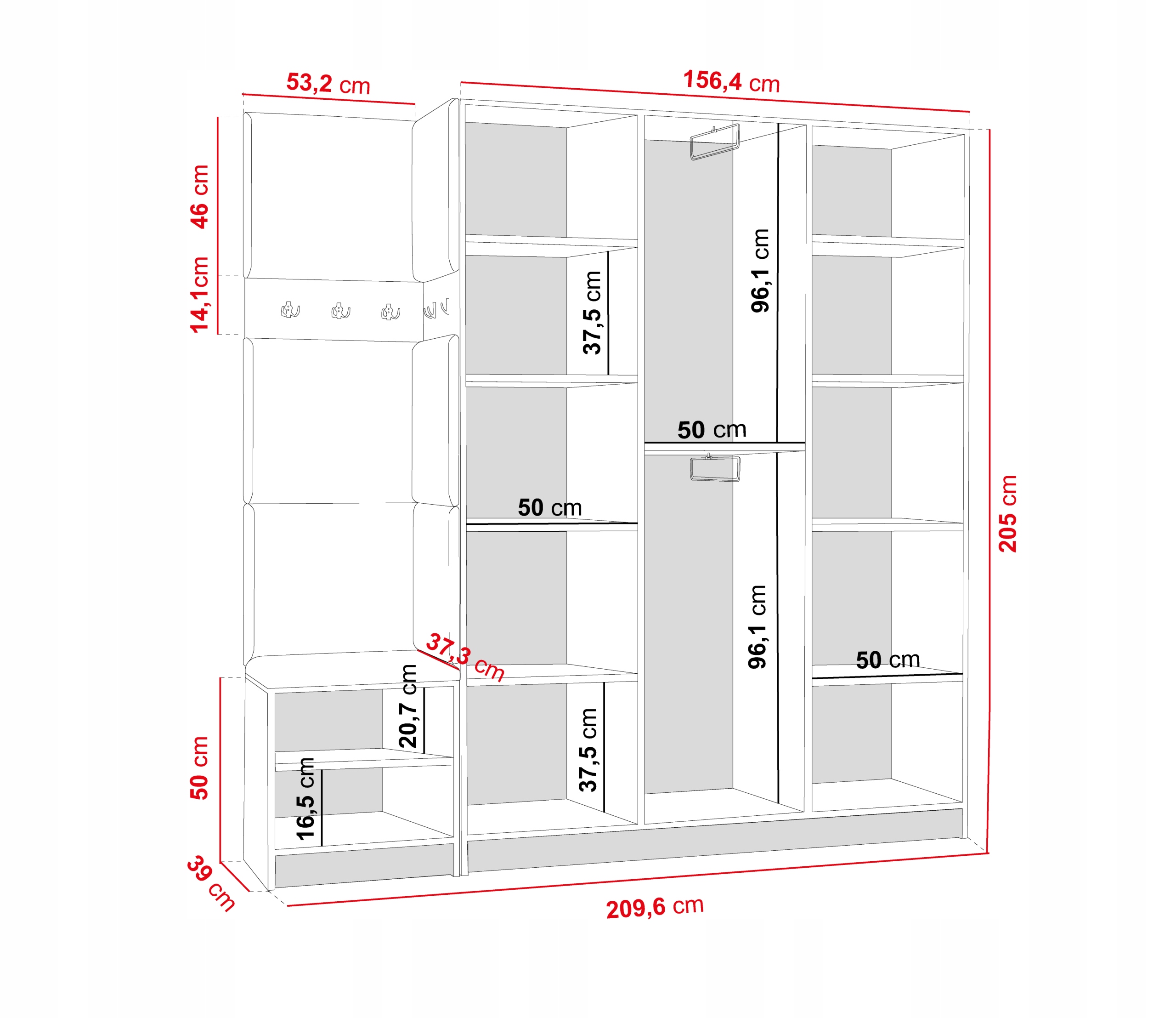 Невероятным преимуществом является его высота 205 см, ведь у конкурентов шкаф-купе она значительно ниже.