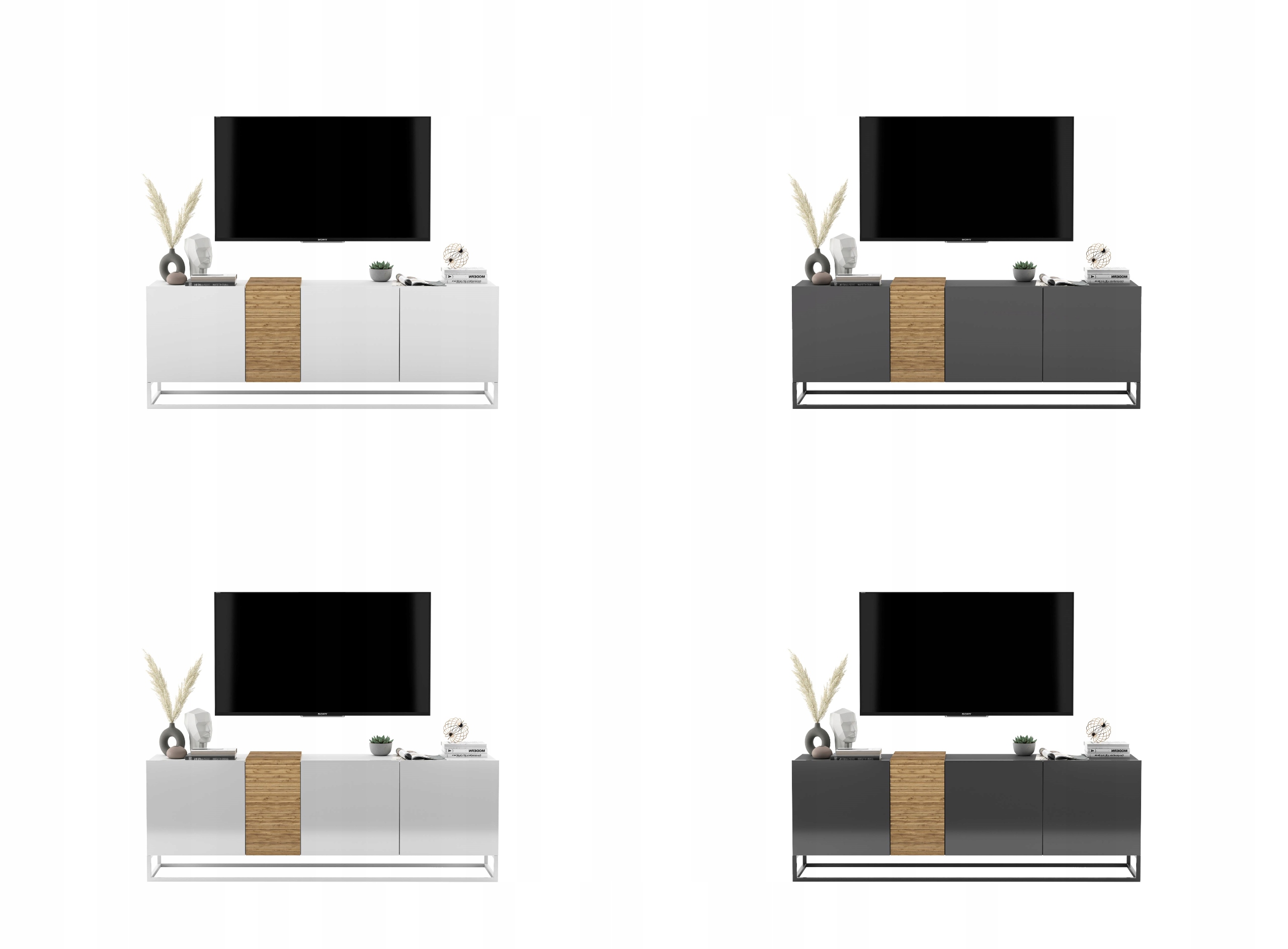Современный трехдверный шкаф под ТВ, который подойдет к любому интерьеру. Его оригинальность удовлетворит даже самых требовательных пользователей. Он разделен на две двухуровневые закрытые камеры. Он также имеет удобный отсек для хранения, который открывается сверху. Дополнительный фрезерованный передний элемент придает всему неповторимый стиль. Удобное открывание фасадов без ручек придает ему элегантности.