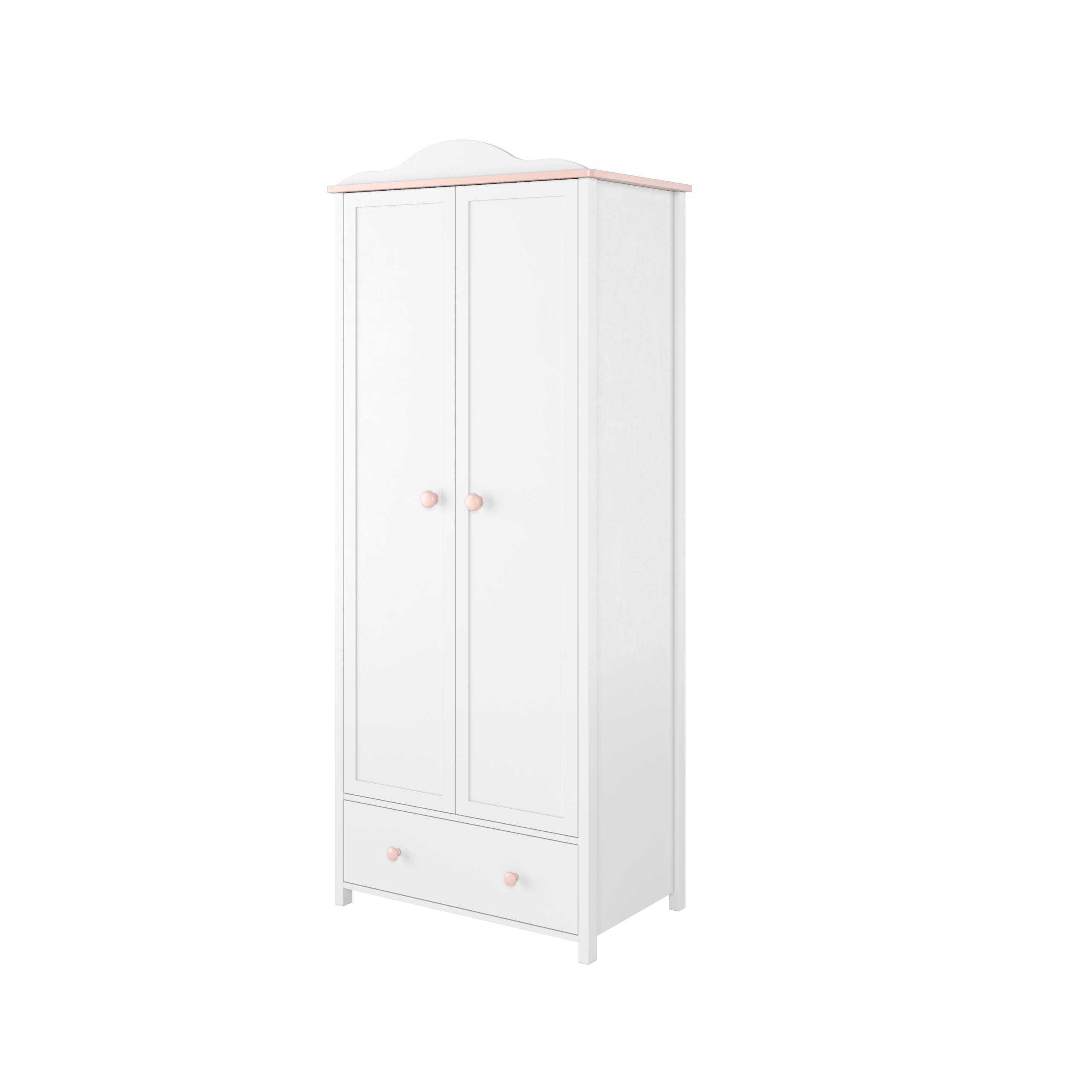 Двухдверный шкаф для одежды LUNA со штангой и вместительным легкодоступным ящиком. Альпийский белый корпус, розовые детали и оригинальная отделка с характерной мягкой волной создают неповторимый характер мебели, которая понравится как маленьким, так и большим романтикам. Мебель изготовлена из прочного ламинированного картона с прочной кромкой ABS. Ручки пластиковые.