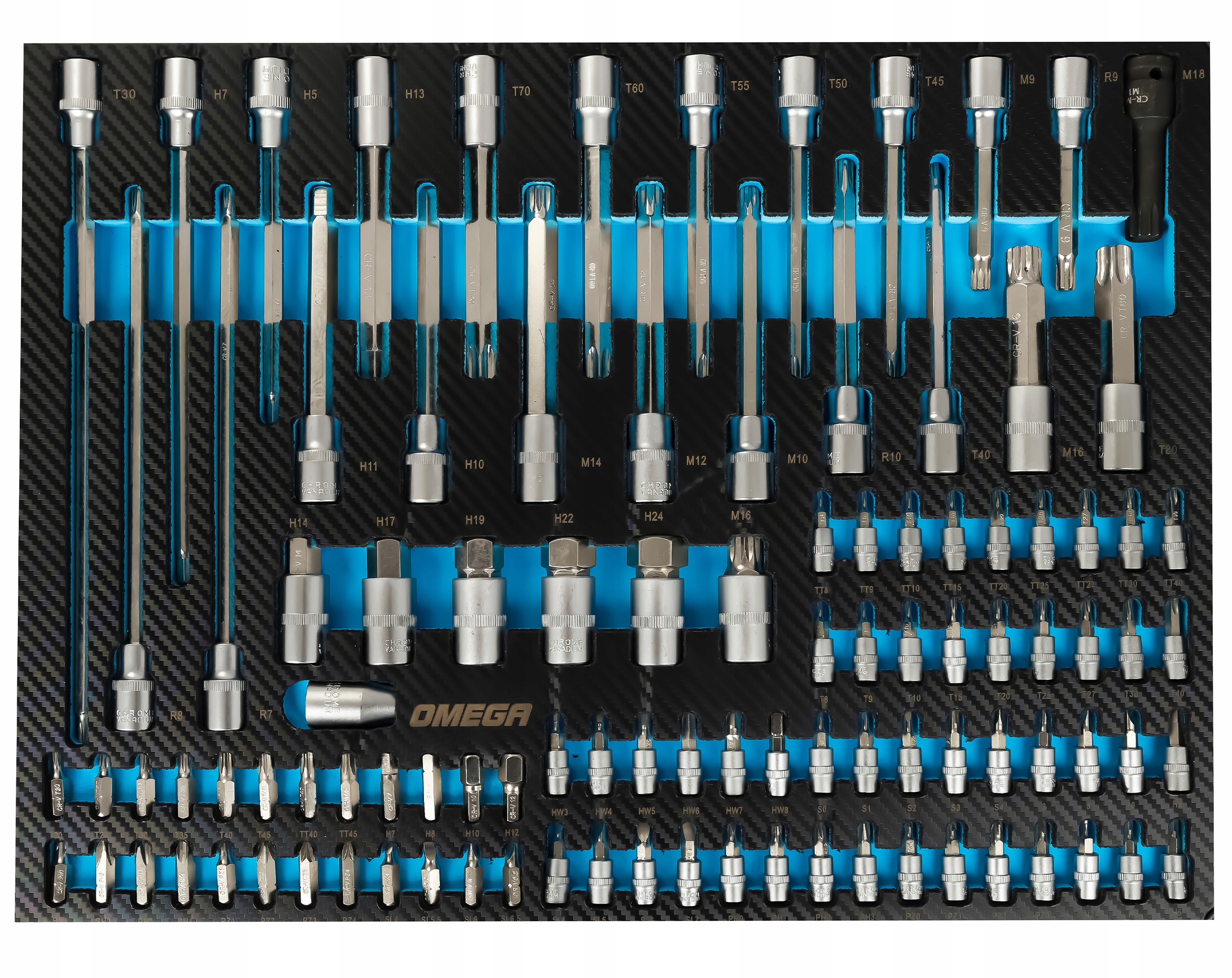- Головки 1/4" с битами: Torx безопасность - Т8; Т9; Т10; Т15; Т20; Т25; Т27; Т30; T40
