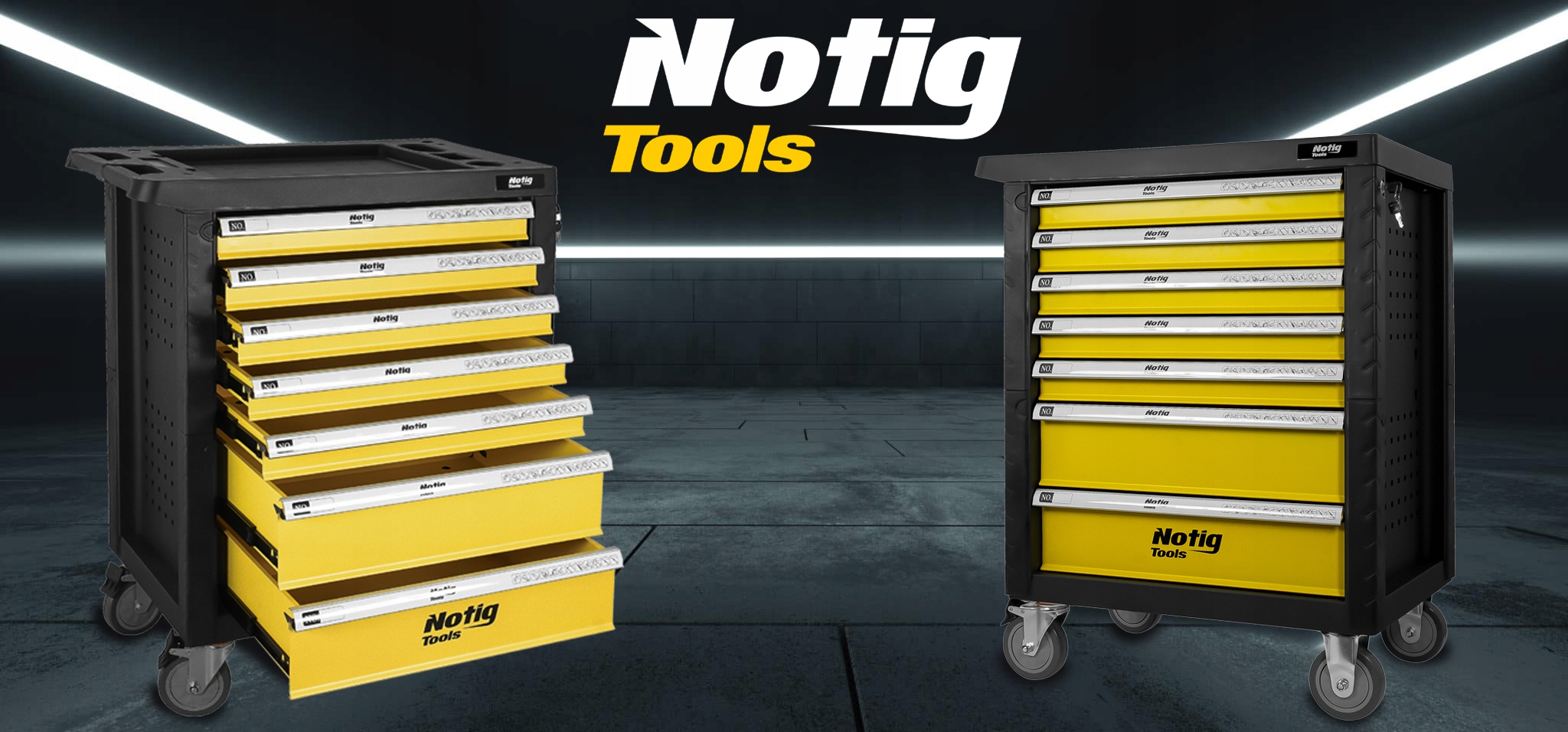 Шкаф для инструментов Notig Tools имеет7 практичных ящиков для инструментов, закрывающихся на центральный замок. Все ящики полностью открываются и имеют металлические шариковые направляющие, что обеспечивает длительную, плавную и надежную работу. Ящики фиксируются замком с храповым механизмом, который обеспечивает защиту окружающей среды во время транспортировки. Поверхность столешницы стойка к маслам и жирам. Пятидюймовые, бесшумные, поворотные колеса облегчают маневрирование шкафа, а также оснащены тормозом. Шкаф оснащен ручкой, облегчающей его переноску. Это позволяет поддерживать порядок на рабочем месте. Благодаря ящикам, закрывающимся на ключ, инструменты защищаются от кражи.