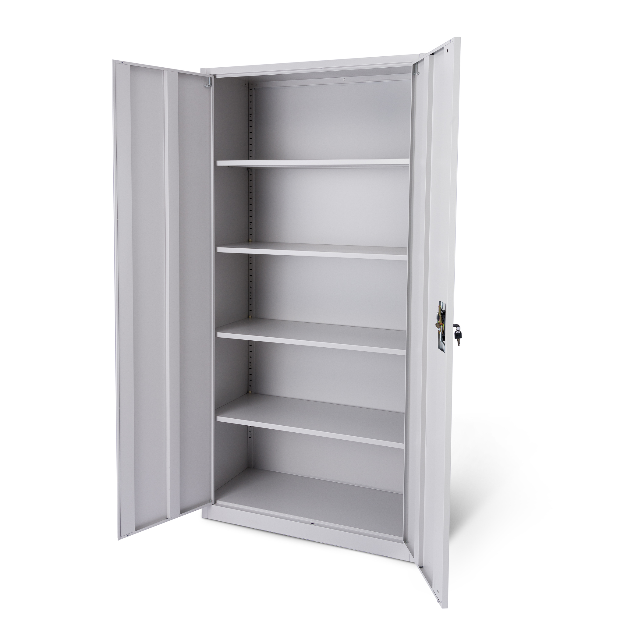 Шкаф оснащен 4 устойчивыми полками. На каждую полку выдерживается вес до 50 кг (при равномерном распределении нагрузки). Прочная и устойчивая конструкция шкафа в сочетании с качественным трехточечным замком обеспечивают защиту от несанкционированного доступа.